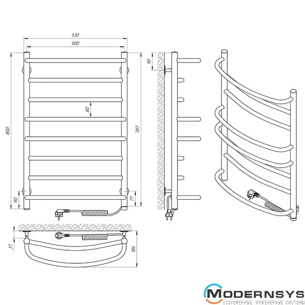 Технические характеристики: Полотенцесушитель электрический Laris (Ларис) Евромикс П8 500 х 800 правое подключение S3