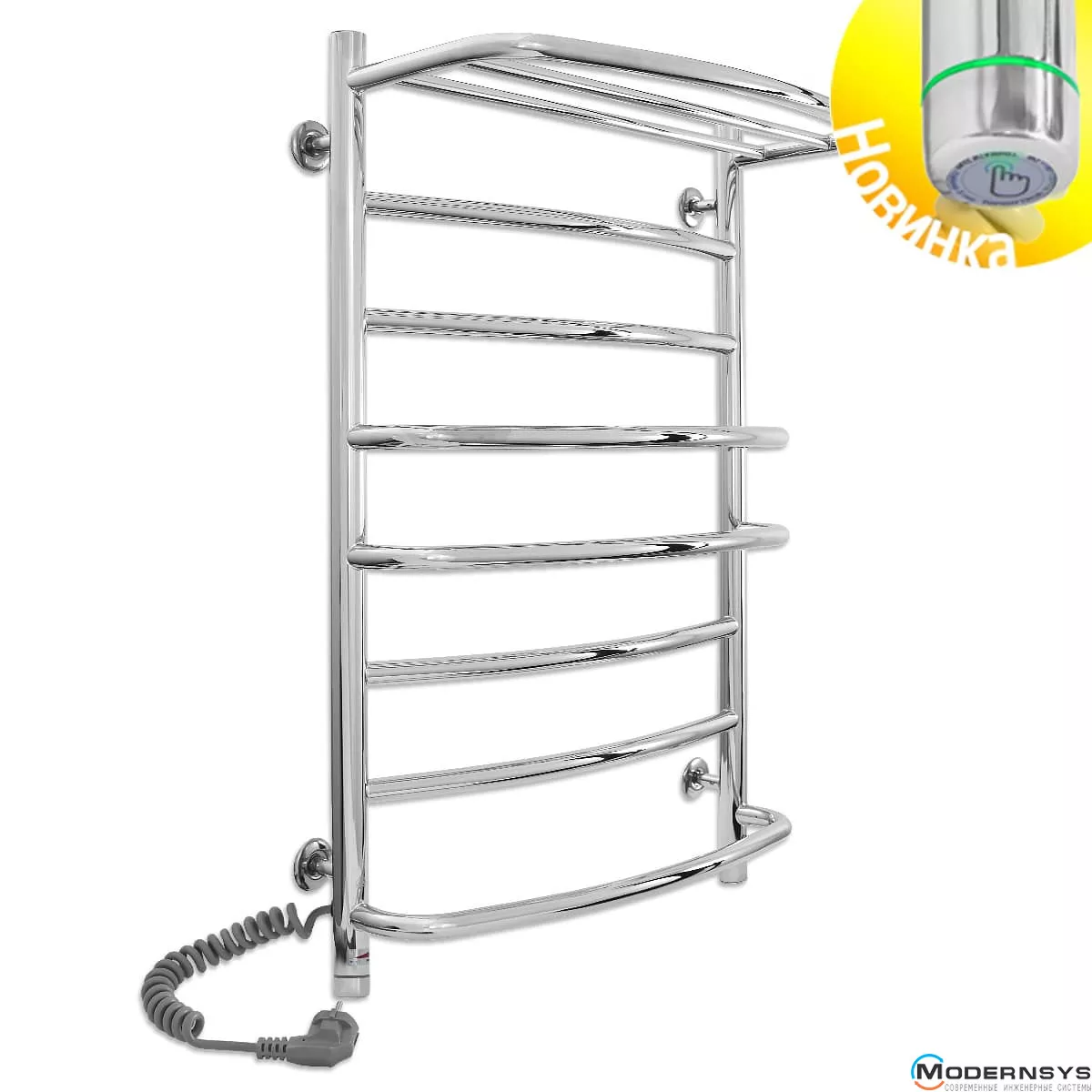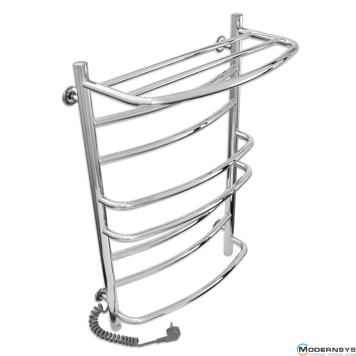 Весь полотенцесущитель изготовлен из высококачественной полированной нержавеющей стали AISI304. Блестящая поверхность изделия превосходно гармонирует с хромированной сантехникой, зрительно расширяя пространство, делая ванную комнату больше и светлее. Прибор оснащён евровилкой и скрученным кабелем питания предотвращающим провисание. Обращаем Ваше внимание, шнур питания расположен с левой или правой стороны полотенцесушителя.