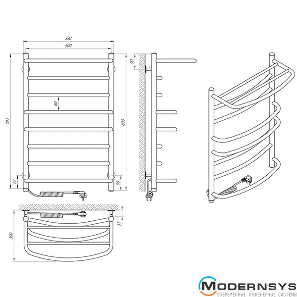 Технические характеристики: Полотенцесушитель электрический Laris (Ларис) Евромикс П8 500 х 800 с полкой левое подключение S3