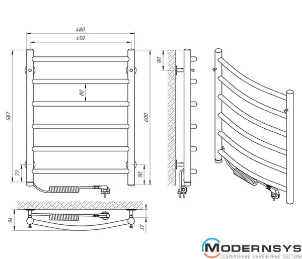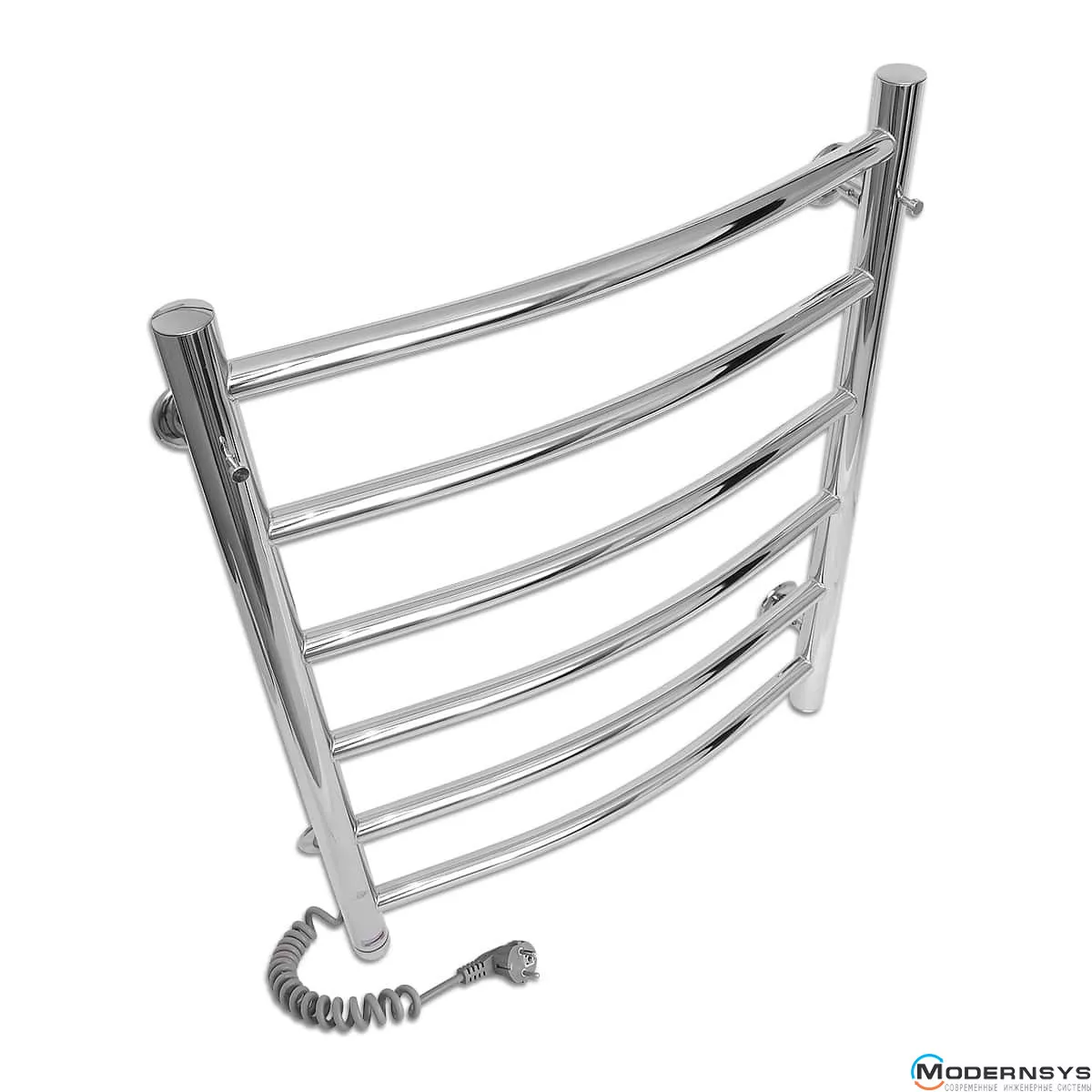 Весь полотенцесущитель изготовлен из высококачественной полированной нержавеющей стали AISI304. Блестящая поверхность изделия превосходно гармонирует с хромированной сантехникой, зрительно расширяя пространство, делая ванную комнату больше и светлее. Прибор оснащён евровилкой и скрученным кабелем питания предотвращающим провисание. Обращаем Ваше внимание, шнур питания расположен с левой или правой стороны полотенцесушителя.
