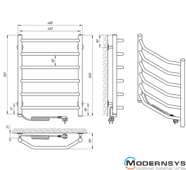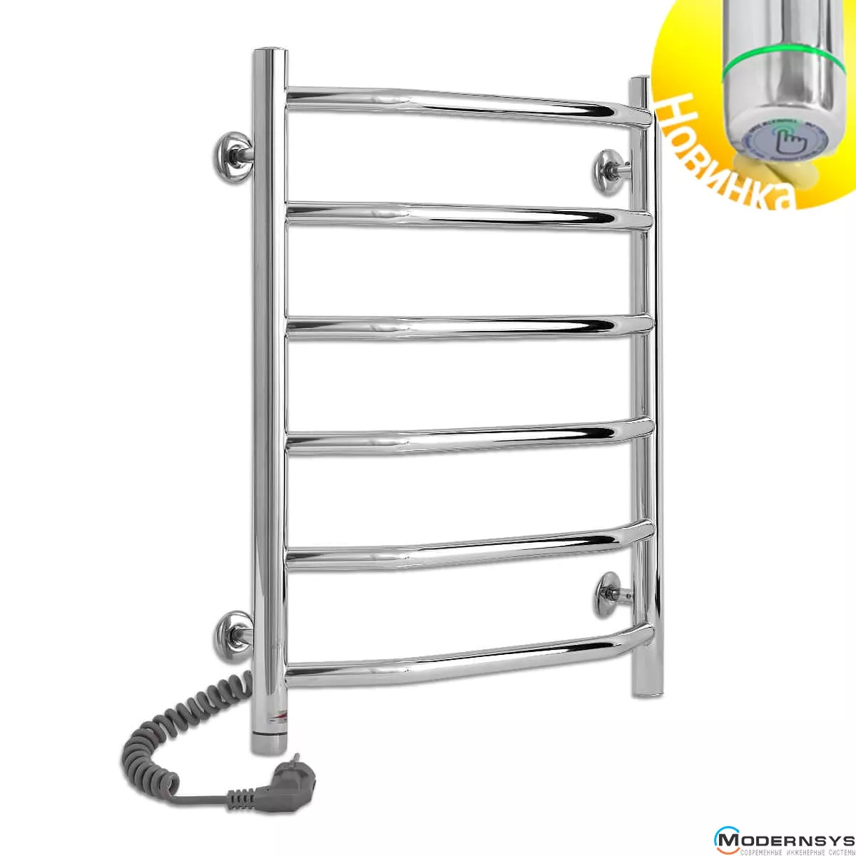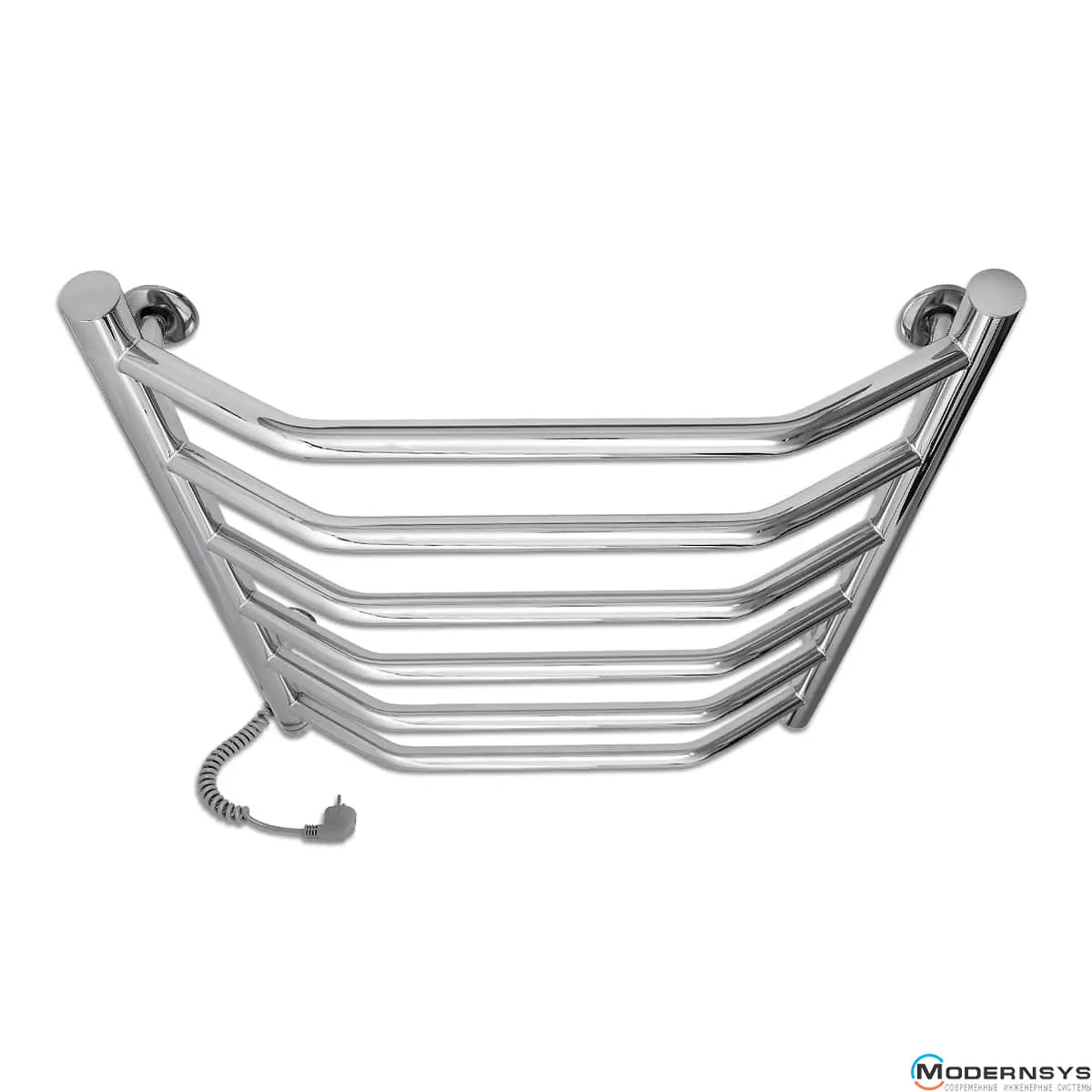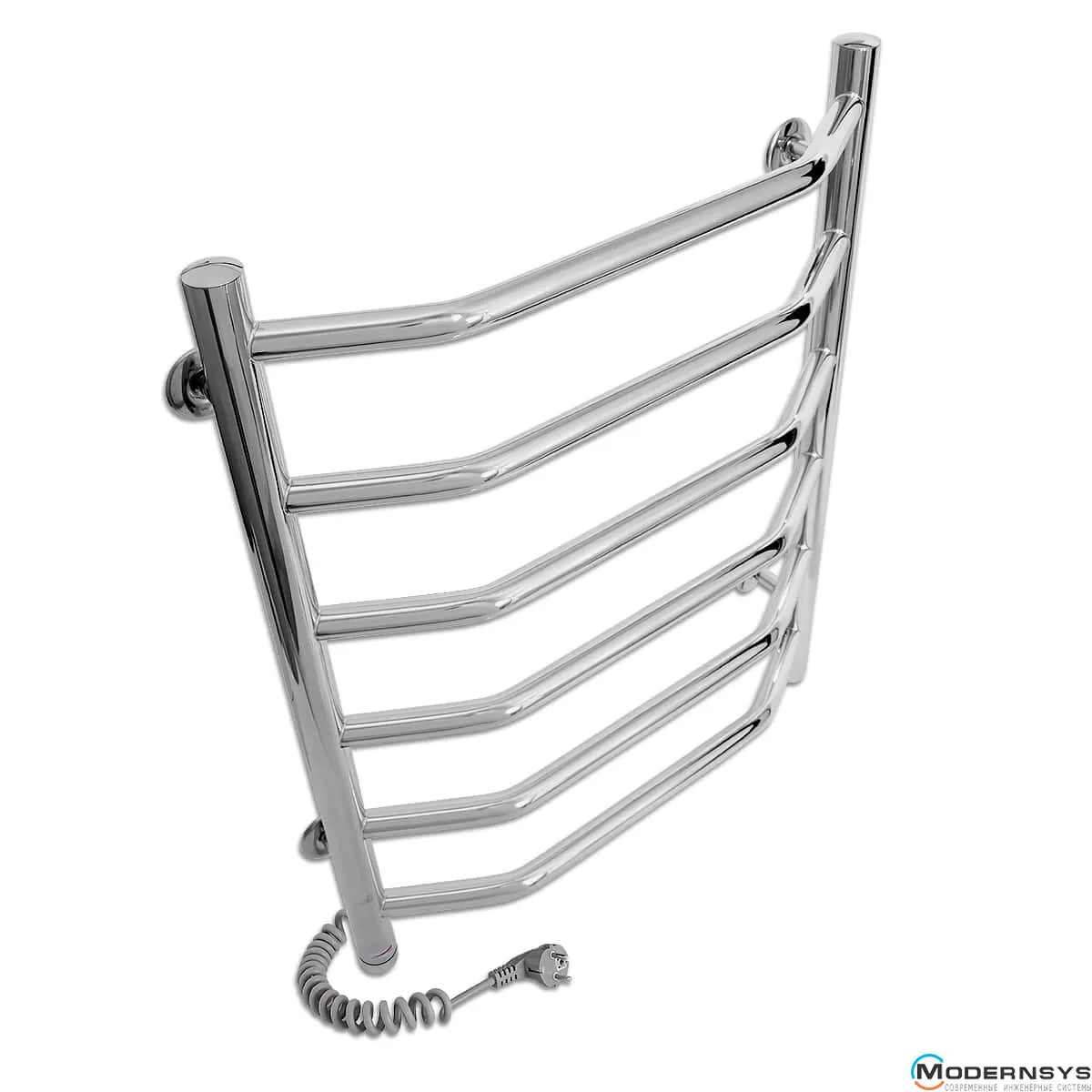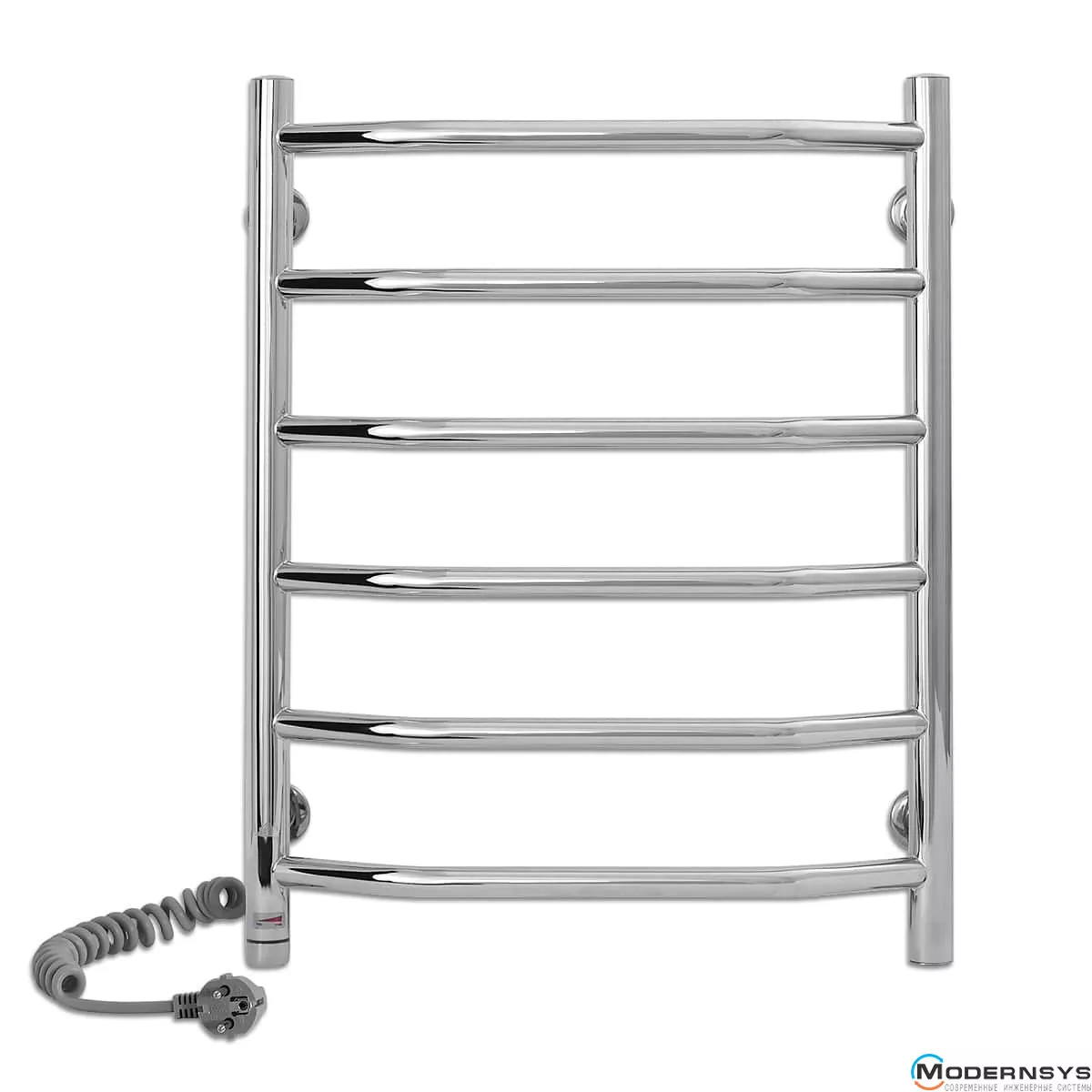 Весь полотенцесущитель изготовлен из высококачественной полированной нержавеющей стали AISI304. Блестящая поверхность изделия превосходно гармонирует с хромированной сантехникой, зрительно расширяя пространство, делая ванную комнату больше и светлее. Прибор оснащён евровилкой и скрученным кабелем питания предотвращающим провисание. Обращаем Ваше внимание, шнур питания расположен с левой стороны полотенцесушителя.