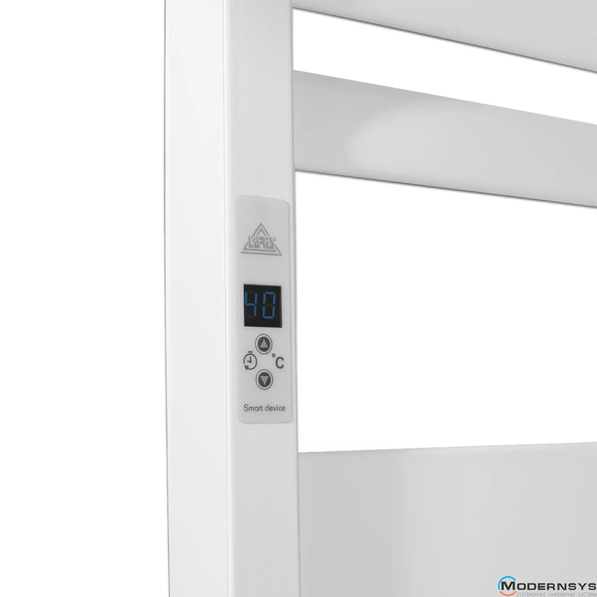 Особенности: управляет нагревом электрополотенцесушителя микропроцессорный термоконтроллер. Для начала работы необходимо задать температуру полотенцесушителя. Дополнительно можно включать/выключать нагрев, программно снижать мощность до 50%. Термостат контролирует температуру поверхности полотенцесушителя, что исключает его перегрев. Выдерживает напряжение 1500 В переменного тока/минуту. Есть удобная функция блокировки кнопок от детей.