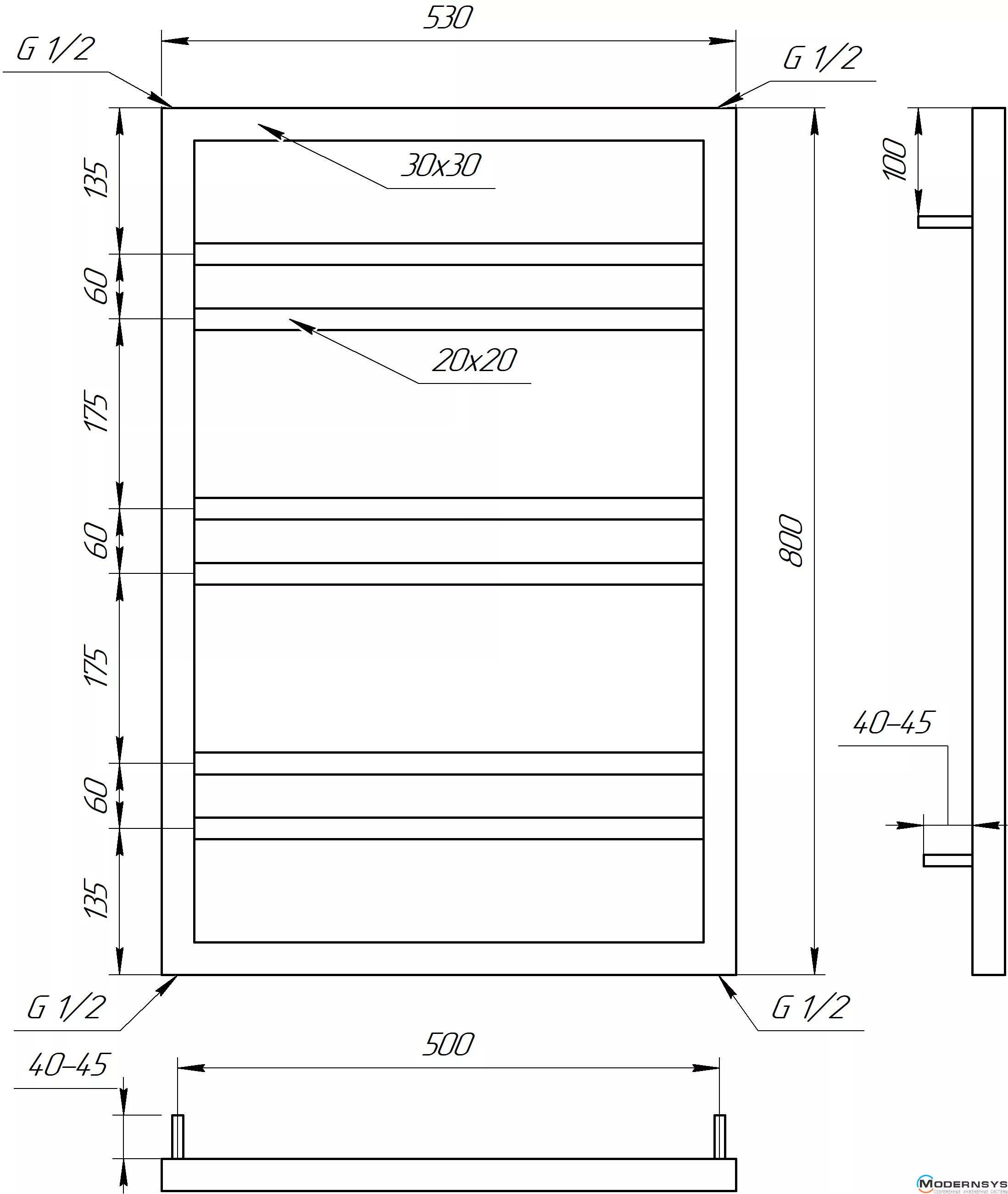 Технические характеристики: Полотенцесушитель Genesis-Aqua (Генезис Аква) ANGEL 1000x530 белый