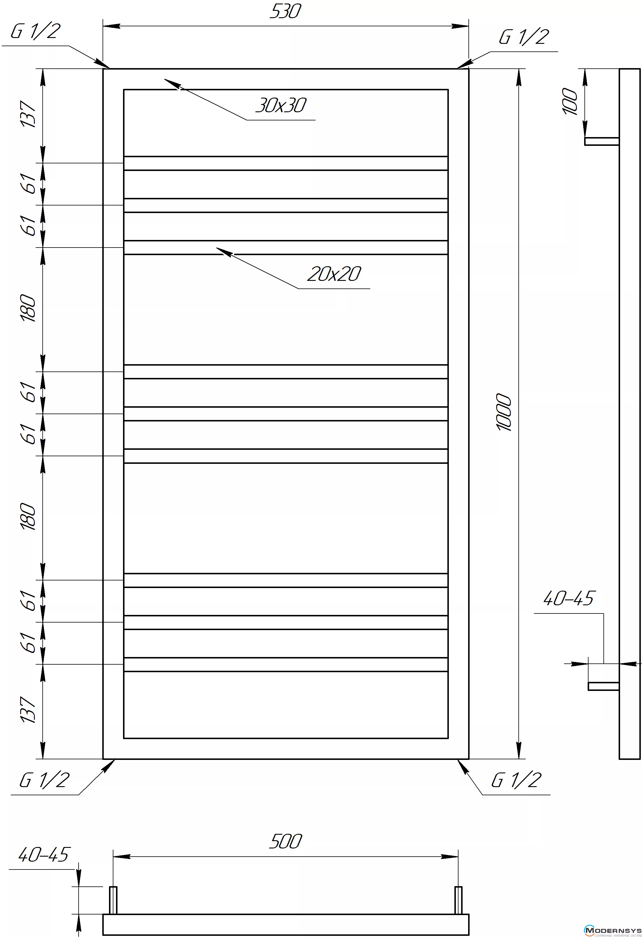 Технические характеристики: Полотенцесушитель Genesis-Aqua (Генезис Аква) ANGEL 800x530 графит