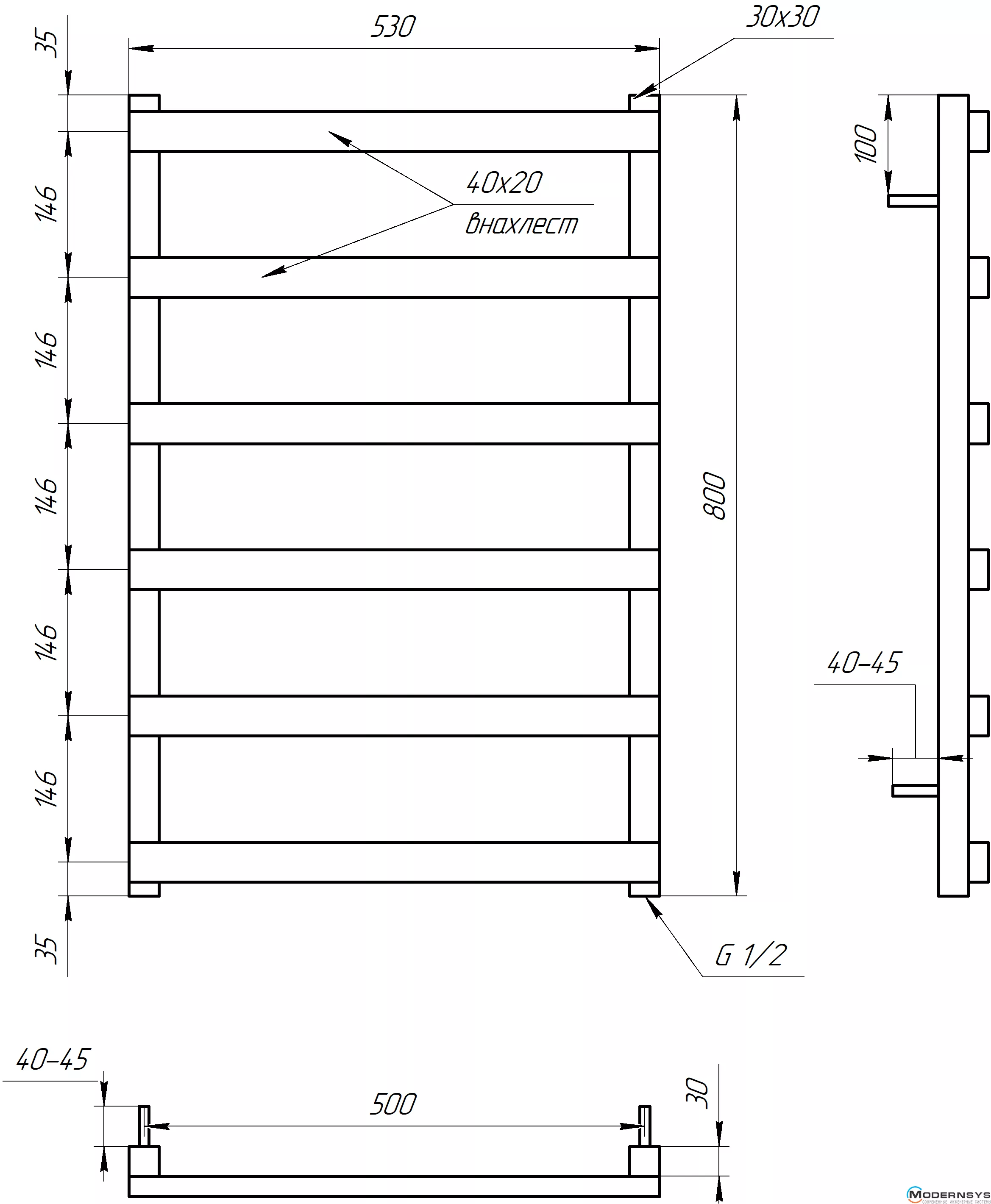 Технические характеристики: Полотенцесушитель Genesis-Aqua (Генезис Аква) BASIS 800x530 черный