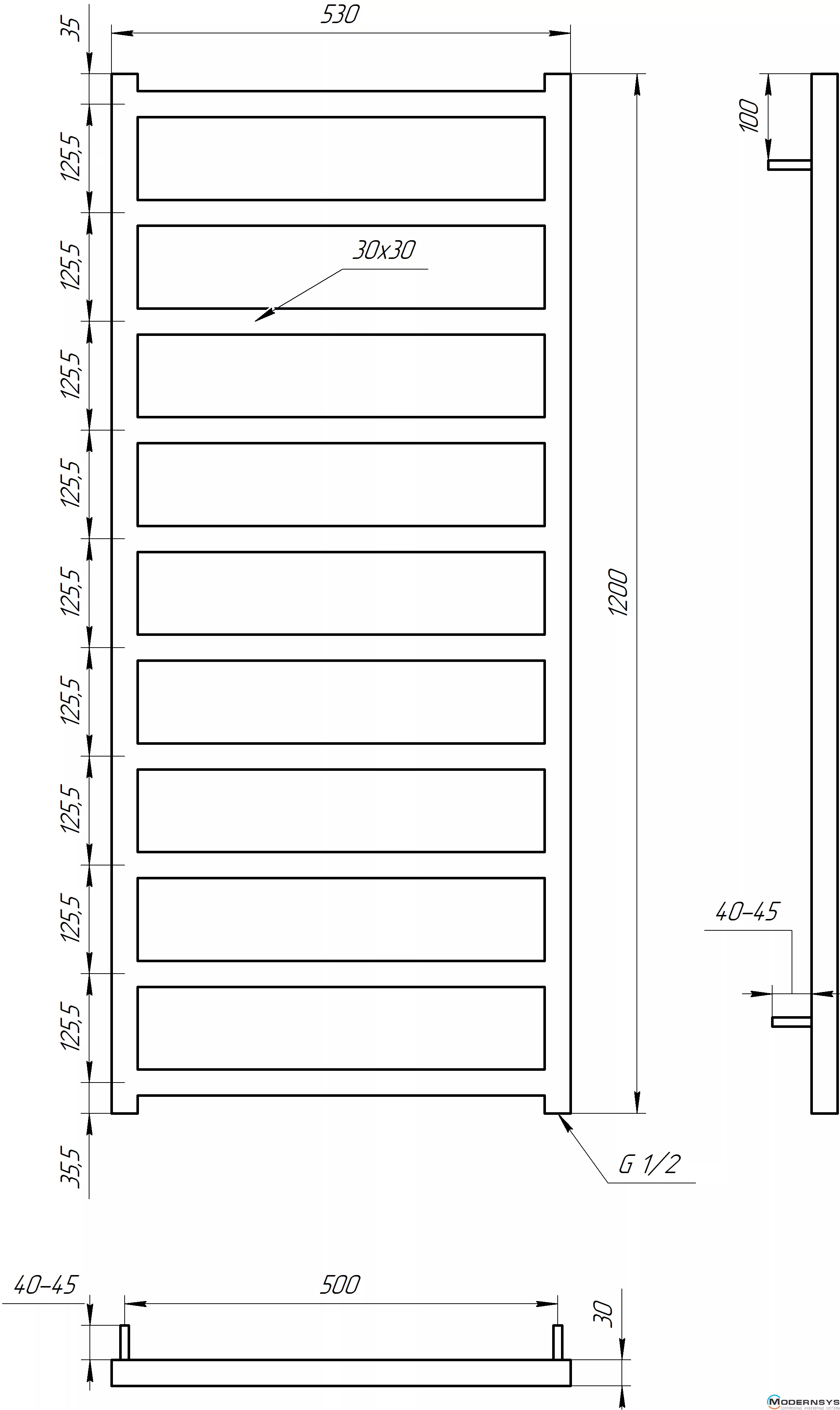 Технические характеристики: Полотенцесушитель Genesis-Aqua (Генезис Аква) BUD 1200x530 черный