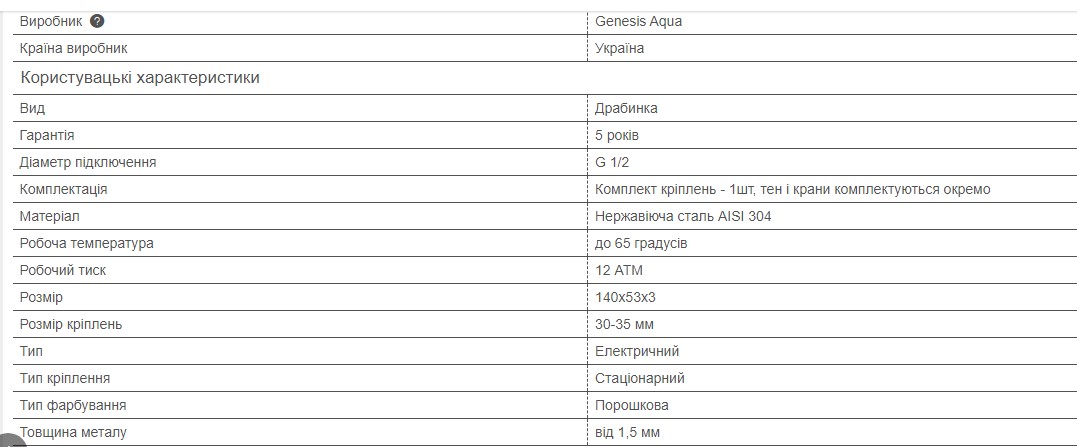 - Комплект креплений - 1 шт., тэн и краны комплектуются отдельно.