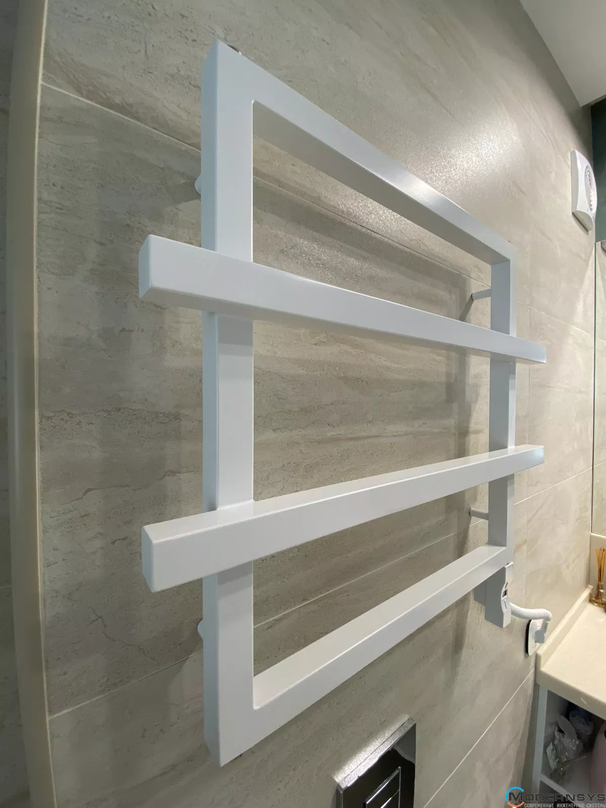Преимущество такого полотенцесушителя в том что он является батареей и теплоотдача у него в разы выше чем у полотенцесушителей с электрическим сухим тэном, то есть наш полотенцесушитель может отопить помещение.