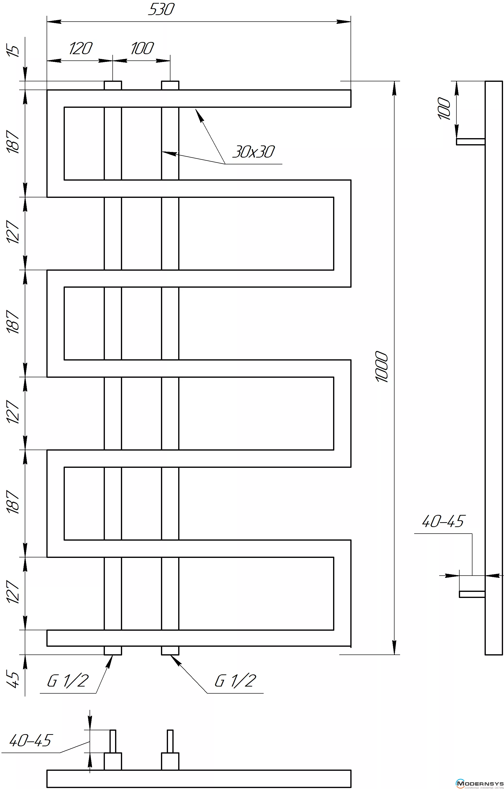Технические характеристики: Полотенцесушитель Genesis-Aqua (Генезис Аква) DUAL 1200x530 черный
