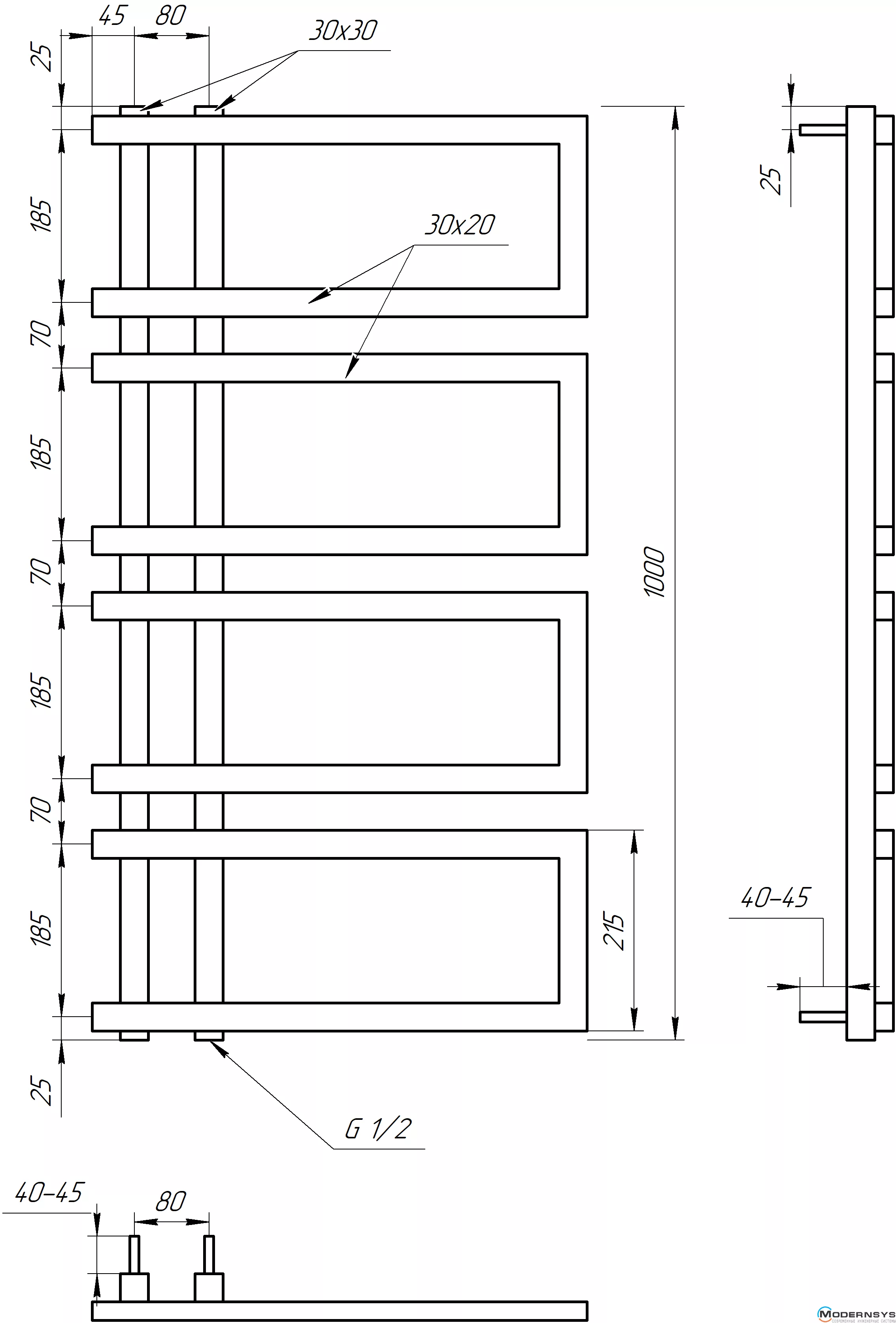 Технические характеристики: Полотенцесушитель Genesis-Aqua (Генезис Аква) ENZO 1000x530 черный