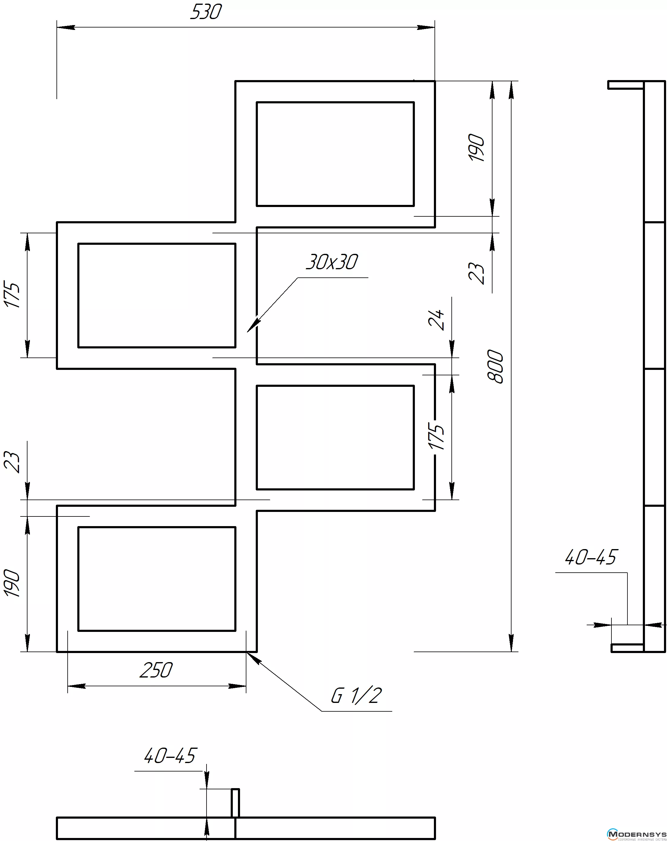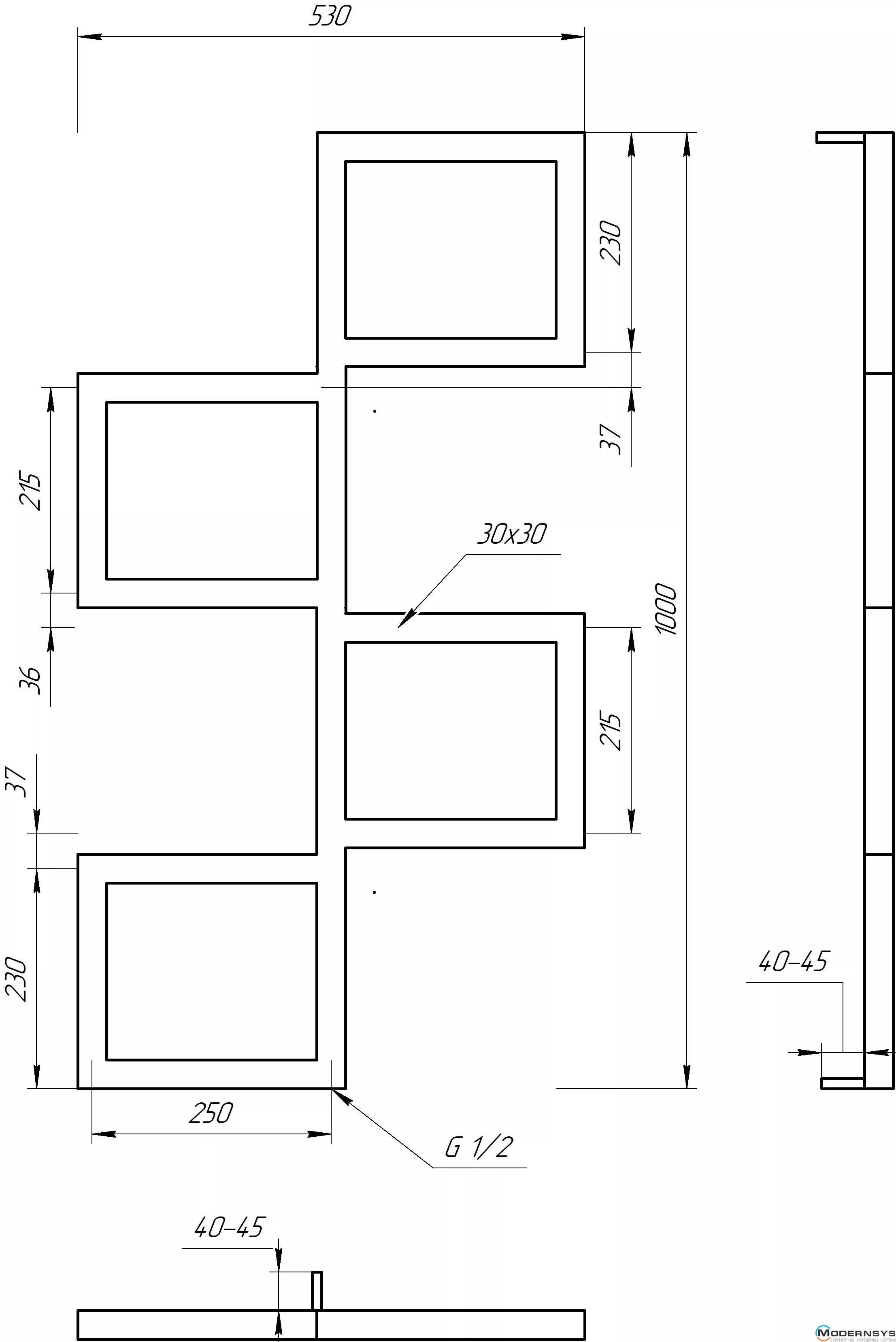 Технические характеристики: Полотенцесушитель Genesis-Aqua (Генезис Аква) FITO 1000x530 черный