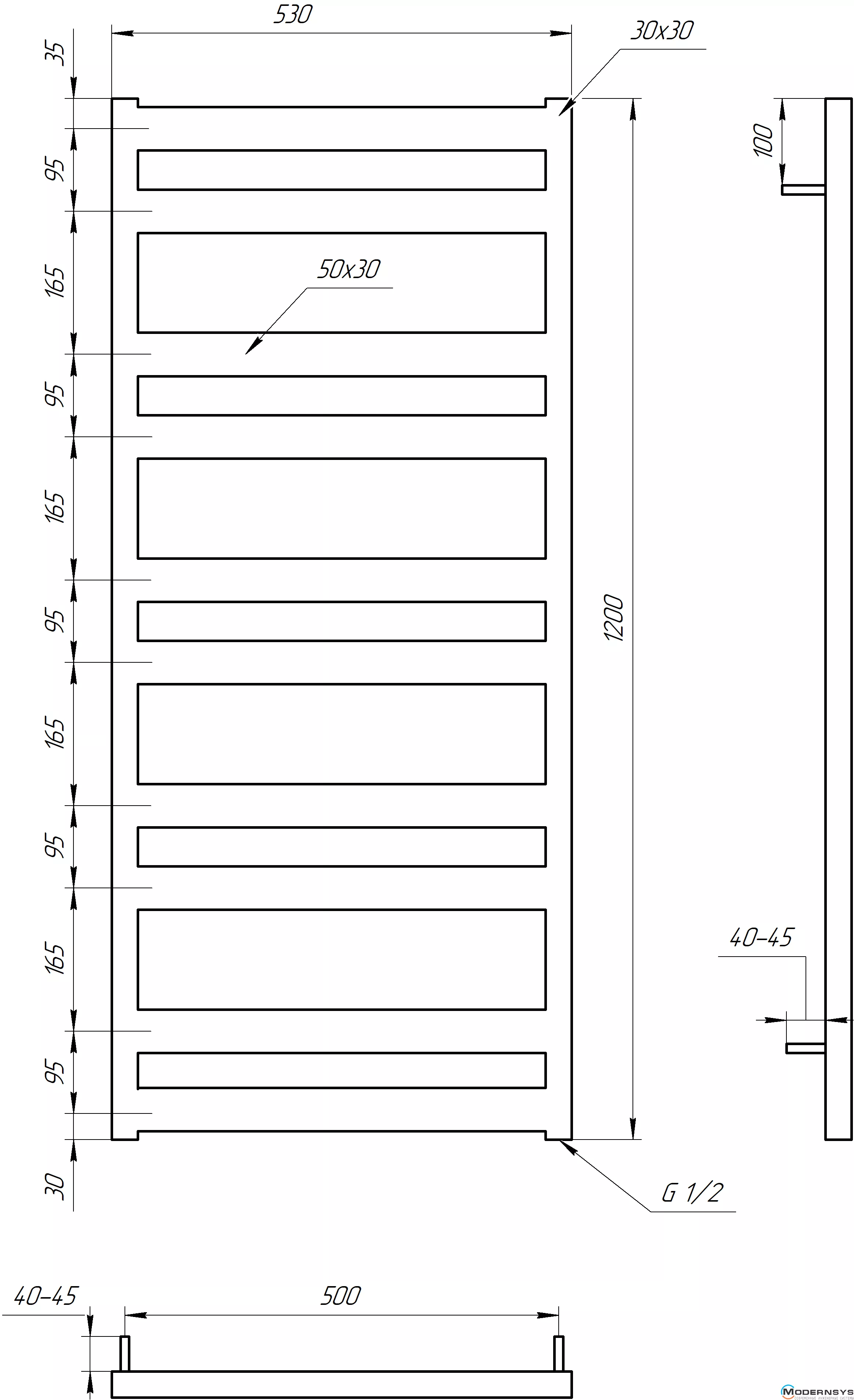 Технические характеристики: Полотенцесушитель Genesis-Aqua (Генезис Аква) FOM 1000x530 черный