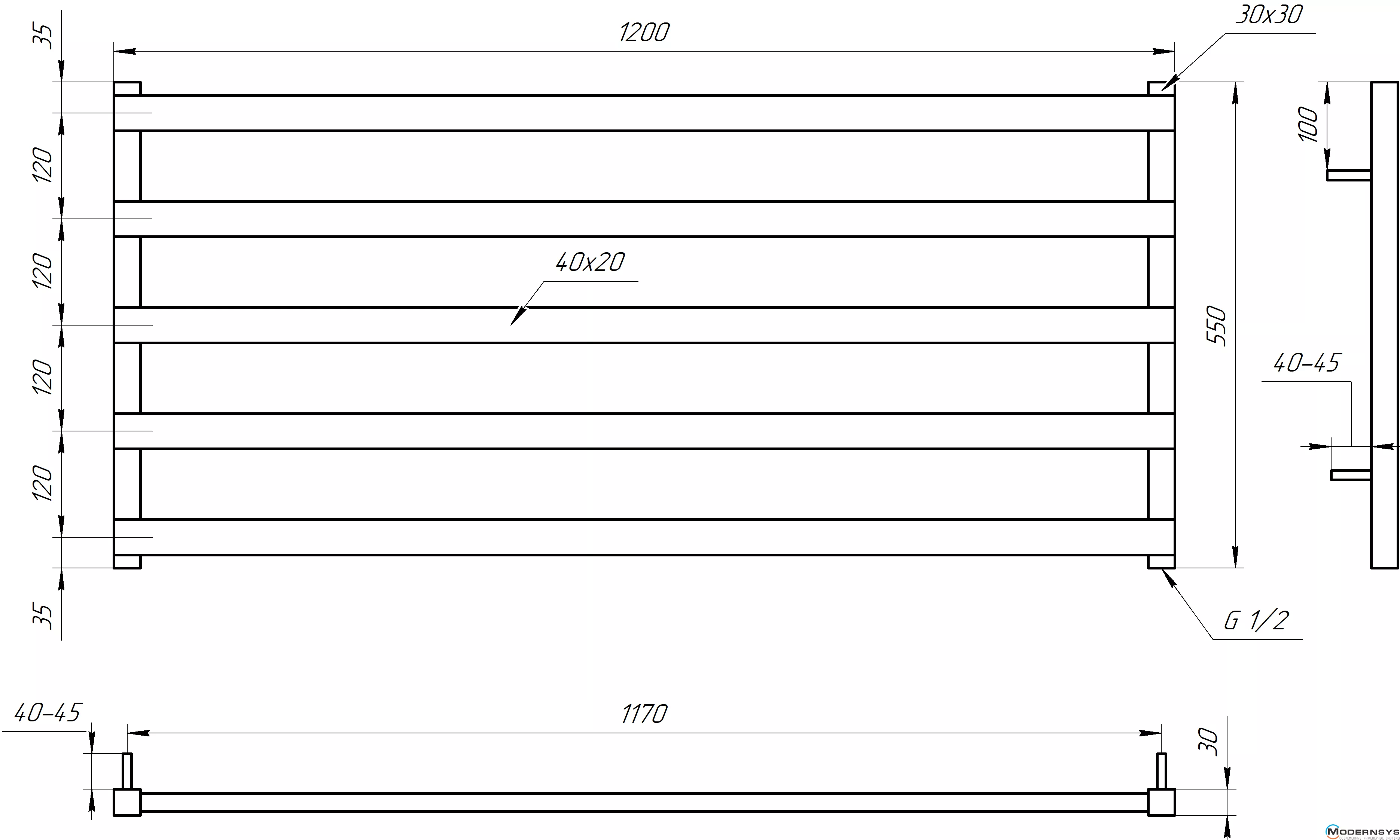 Технические характеристики: Полотенцесушитель Genesis-Aqua (Генезис Аква) GIZA 550x1200 черный