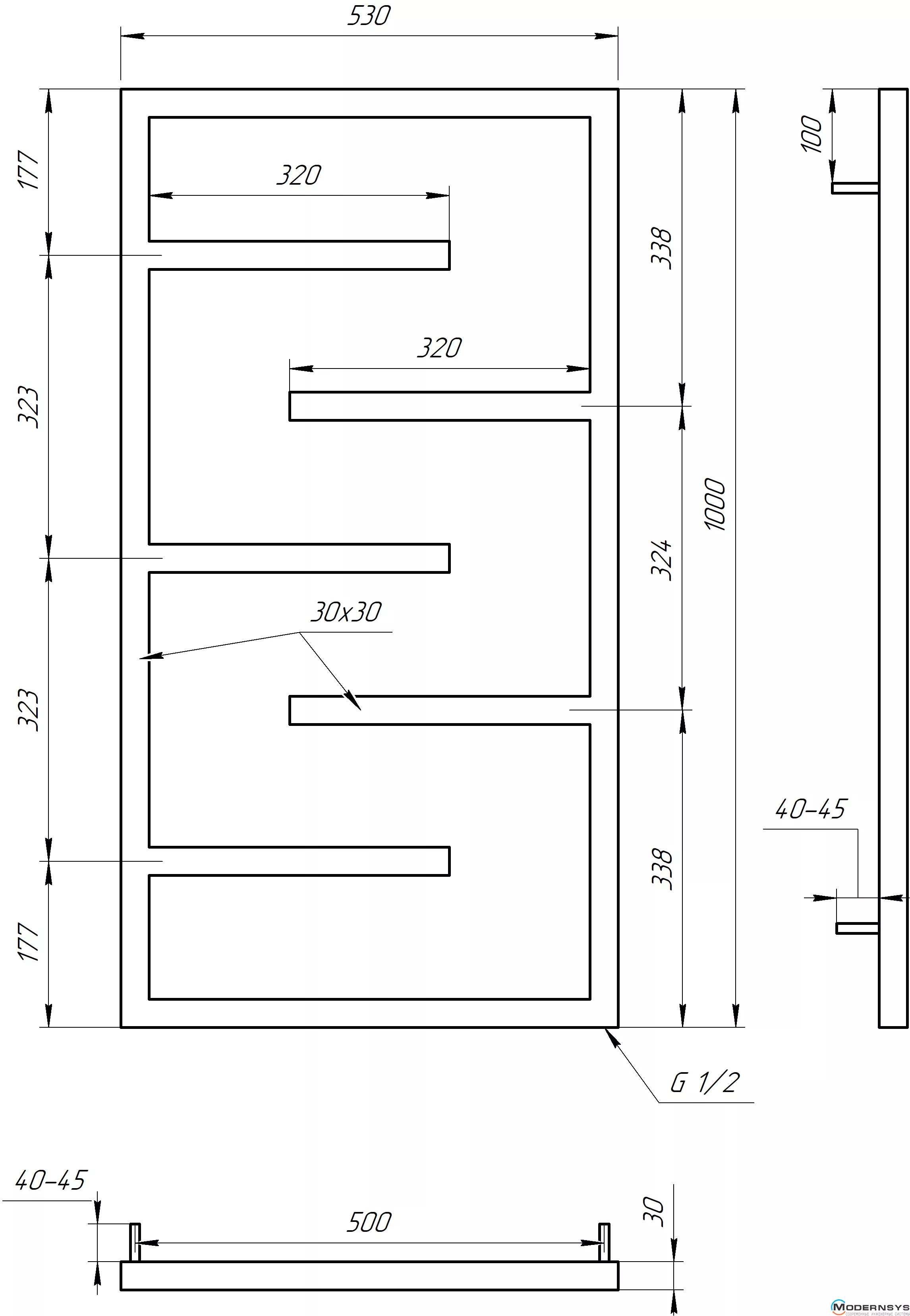 Технические характеристики: Полотенцесушитель Genesis-Aqua (Генезис Аква) INFINITE 1000x530 черный