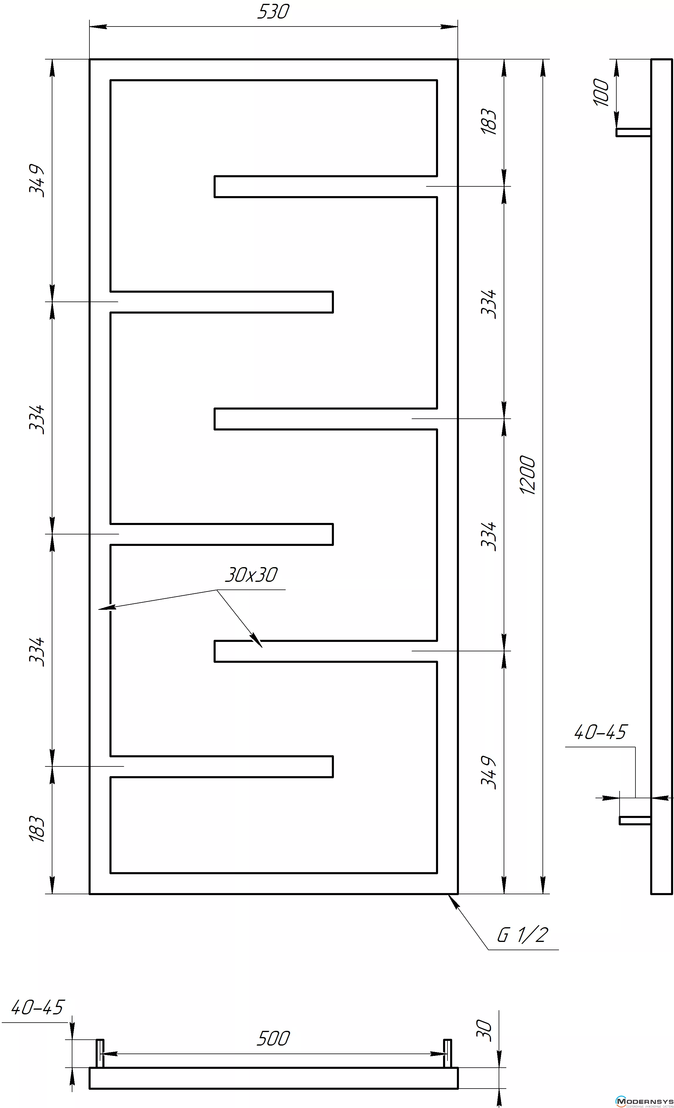 Технические характеристики: Полотенцесушитель Genesis-Aqua (Генезис Аква) INFINITE 1200x530 черный
