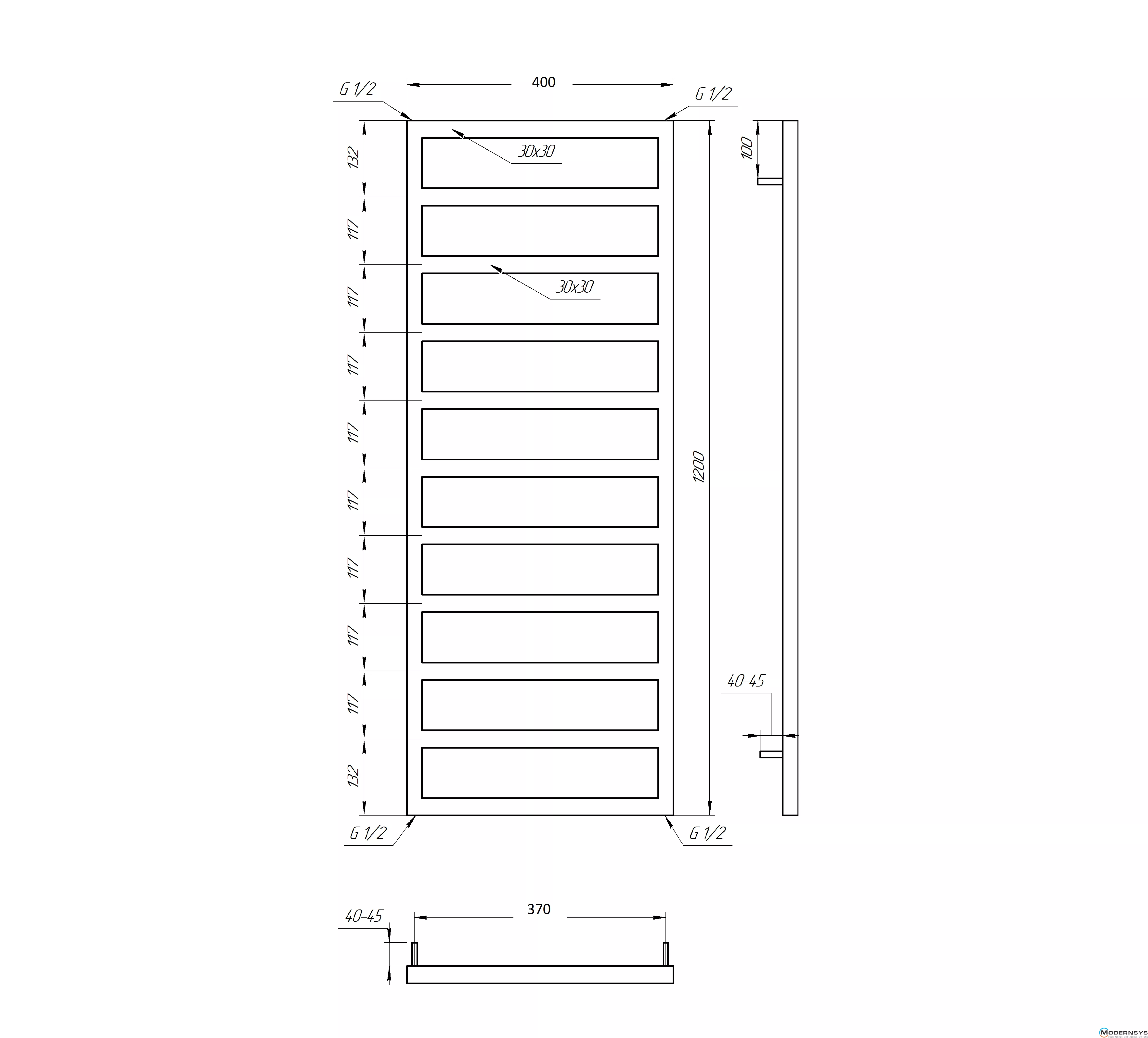 - В зависимости от наличия места на стене можно выбрать полотенцесушитель из 3-х предложенных размеров либо заказать по индивидуальным замерам.