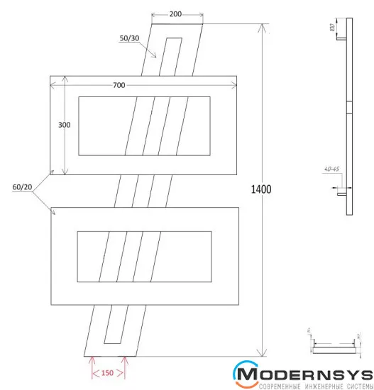 Технические характеристики: Полотенцесушитель Genesis-Aqua (Генезис Аква) Leo 1400x700 графит
