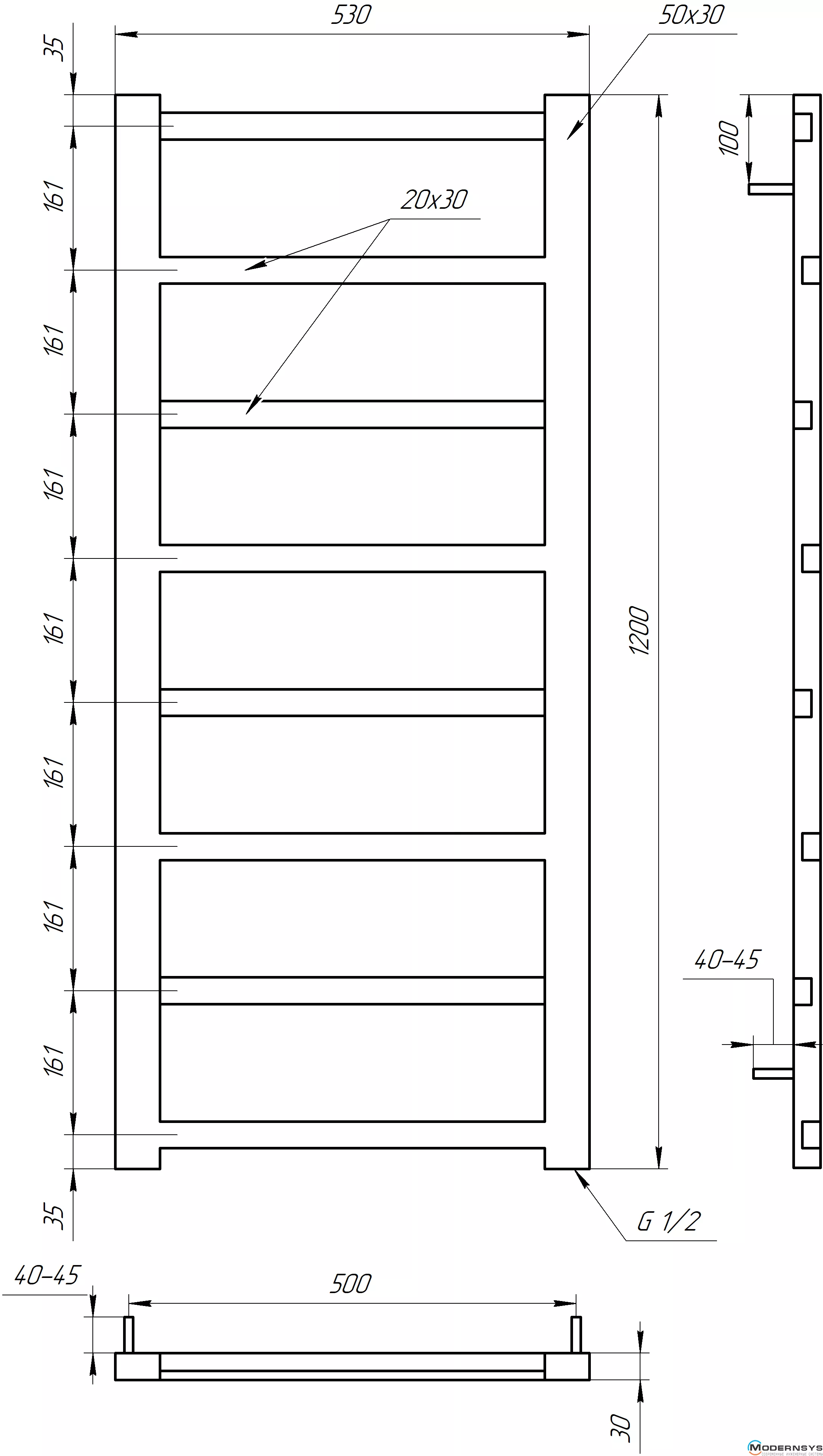 Технические характеристики: Полотенцесушитель Genesis-Aqua (Генезис Аква) LEVEL 1200x530 черный