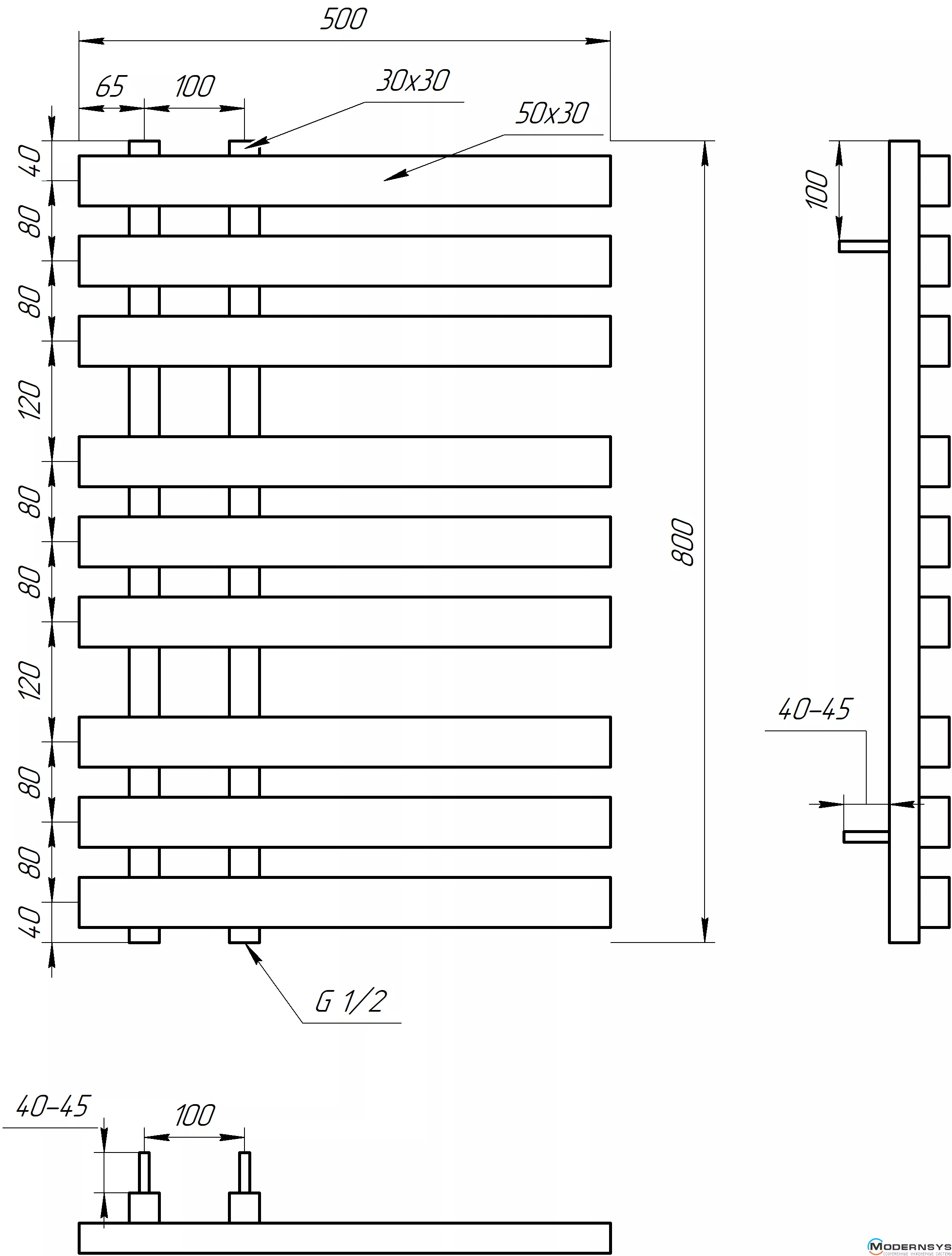 Технические характеристики: Полотенцесушитель Genesis-Aqua (Генезис Аква) MAGNUM 800x500 черный