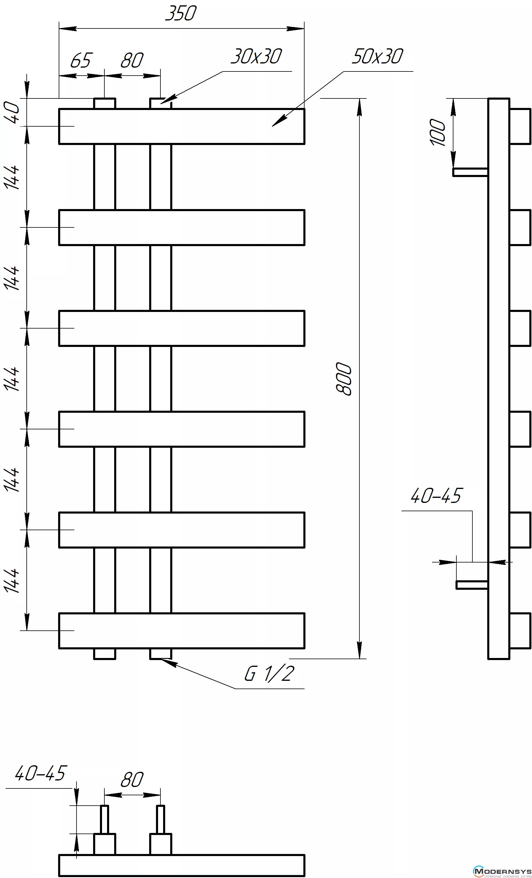 Технические характеристики: Полотенцесушитель Genesis-Aqua (Генезис Аква) MAGNUM LIGHT 800x350 графит