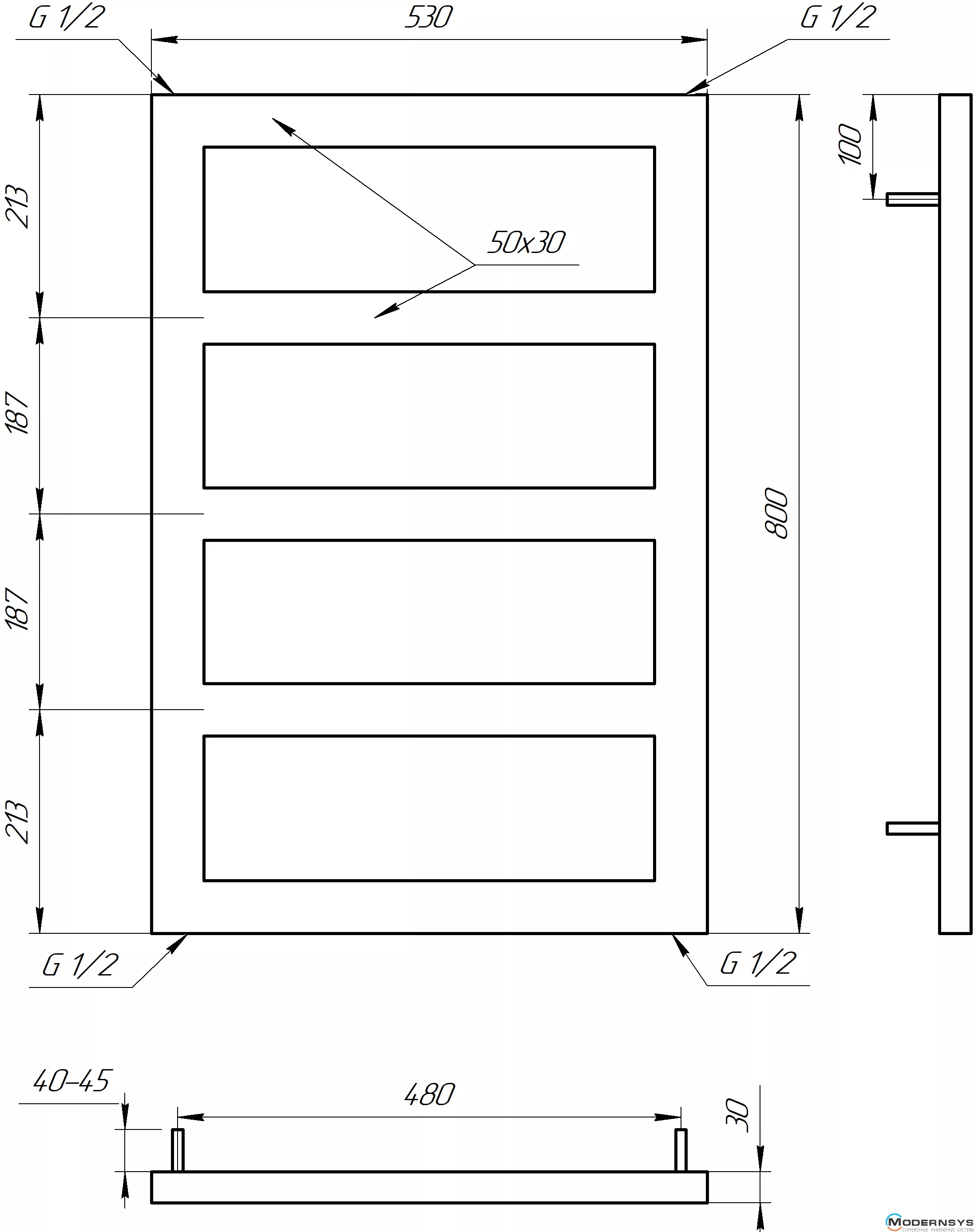 Технические характеристики: Полотенцесушитель Genesis-Aqua (Генезис Аква) MASIVE 800x530 черный