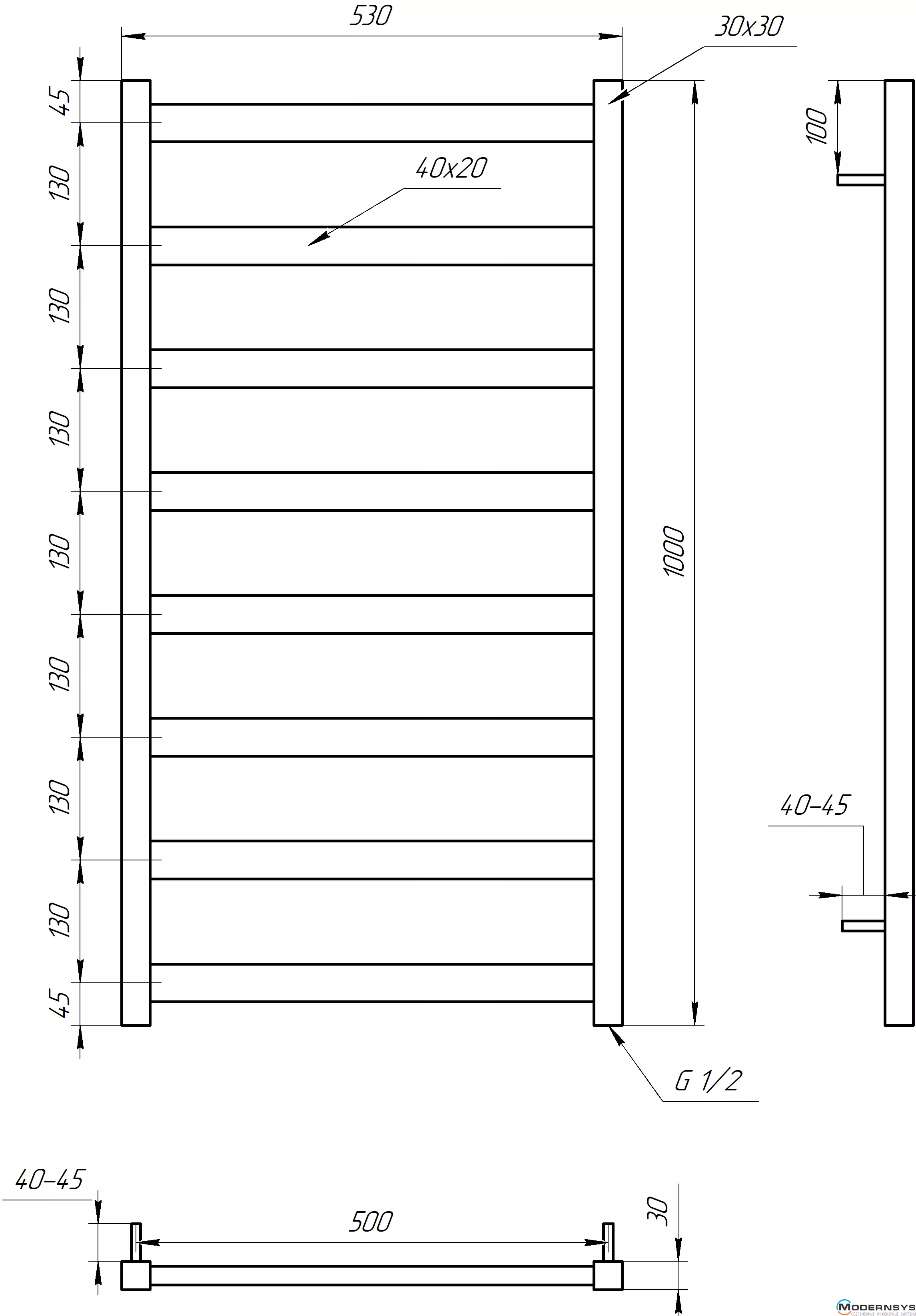 Технические характеристики: Полотенцесушитель Genesis-Aqua (Генезис Аква) MAXI 1000x530 черный