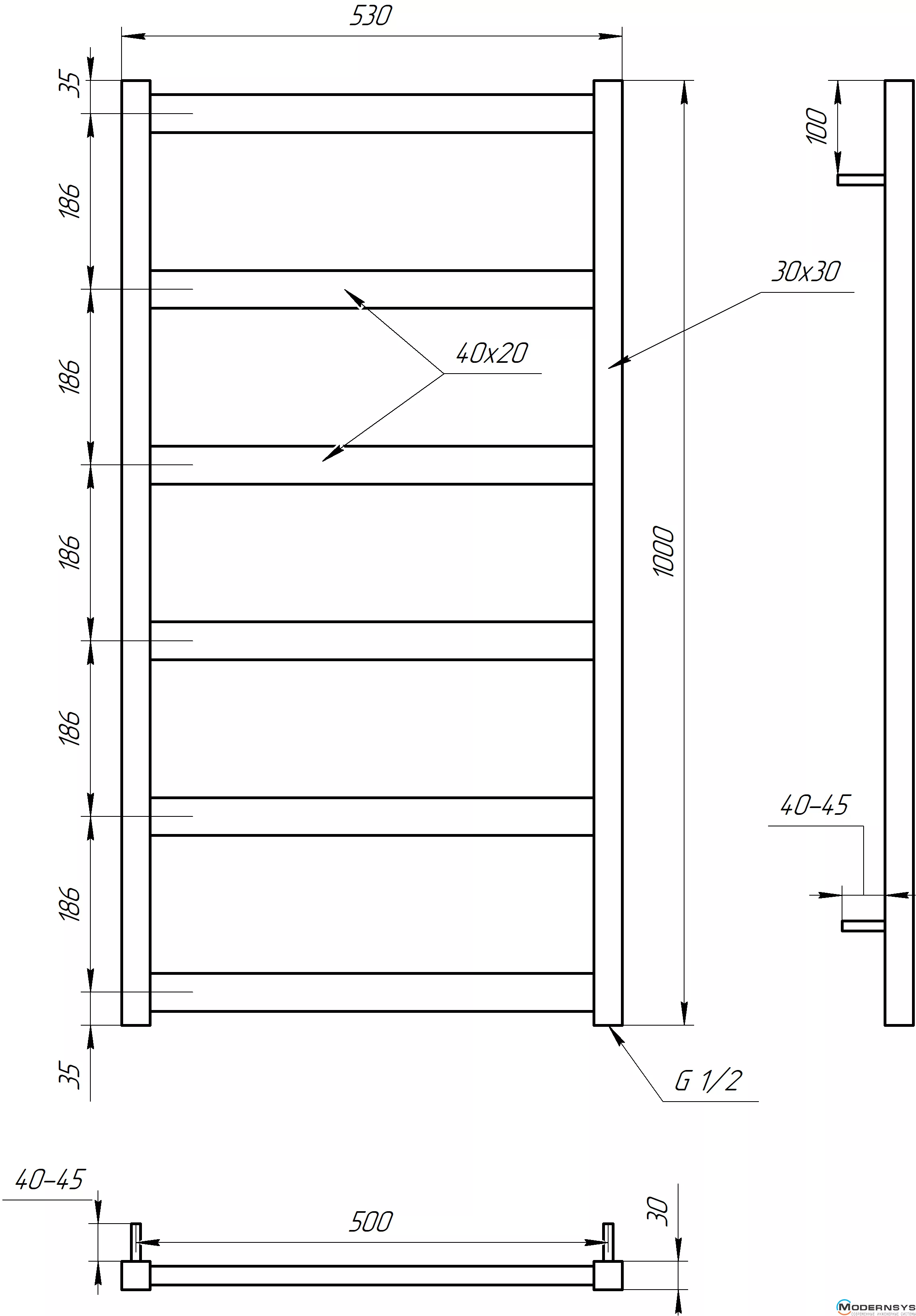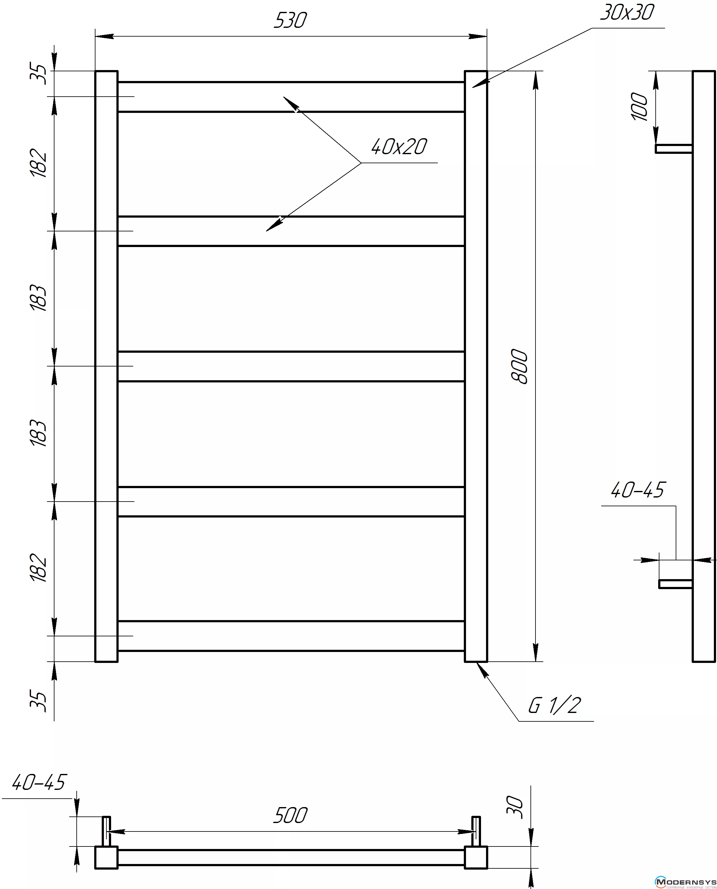 Технические характеристики: Полотенцесушитель Genesis-Aqua (Генезис Аква) MINIMAL 800x530 графит