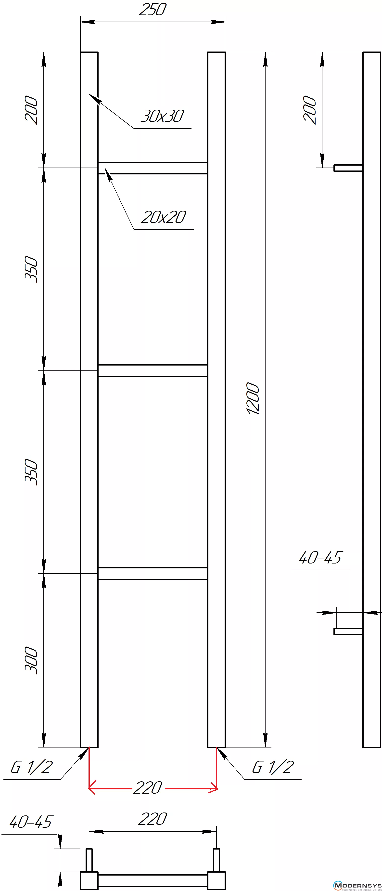 Технические характеристики: Полотенцесушитель Genesis-Aqua (Генезис Аква) MUSA 1200x250 черный