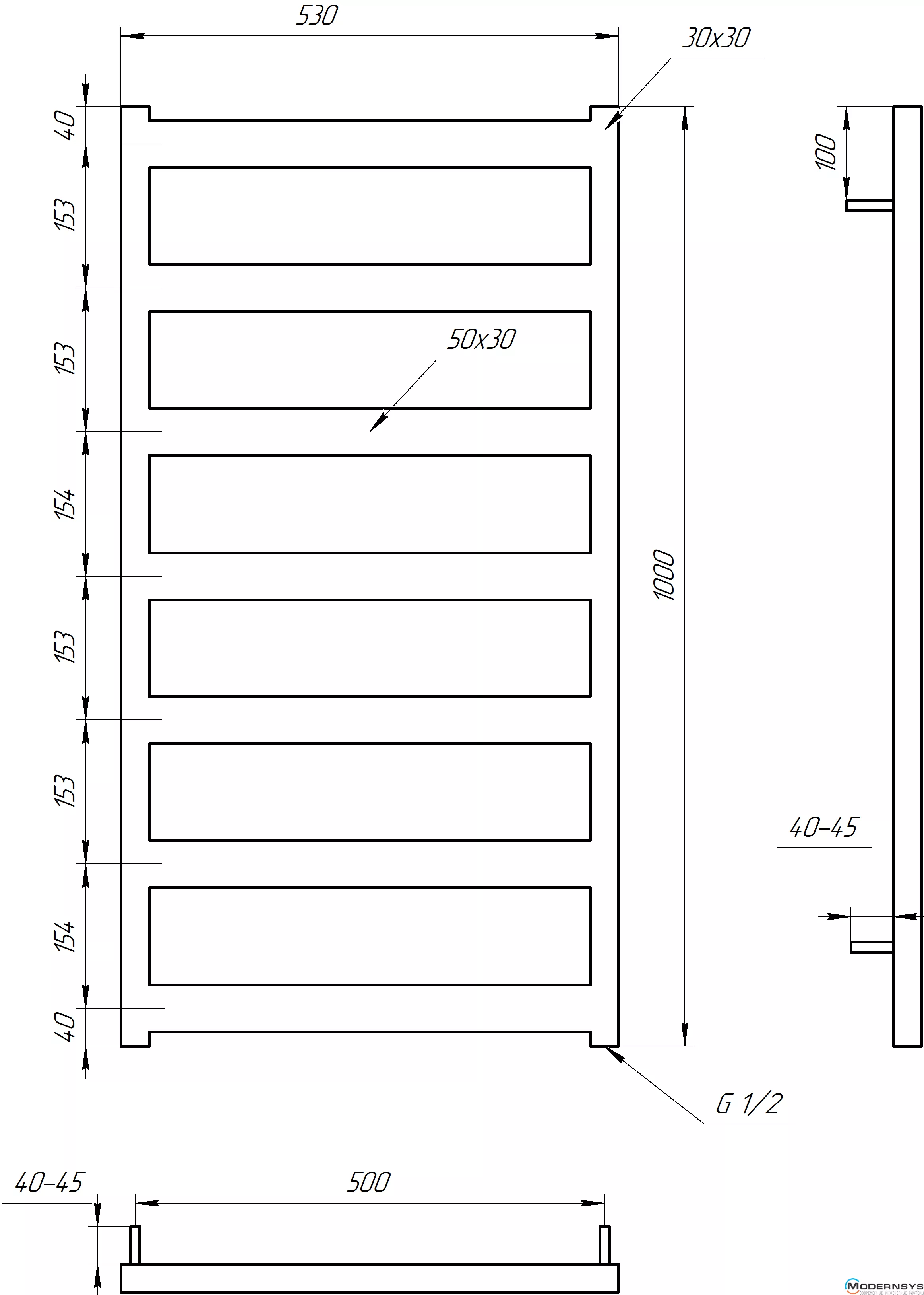 Технические характеристики: Полотенцесушитель Genesis-Aqua (Генезис Аква) NOVA 1000x530 черный