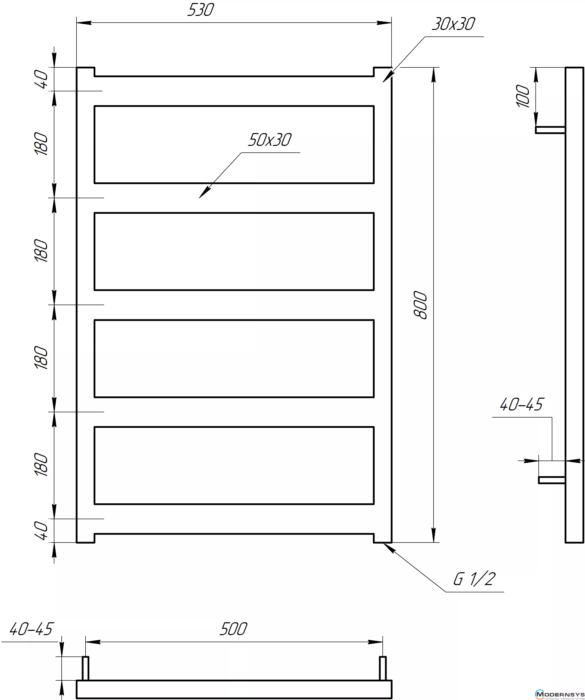 Технические характеристики: Полотенцесушитель Genesis-Aqua (Генезис Аква) NOVA 1200x530 графит