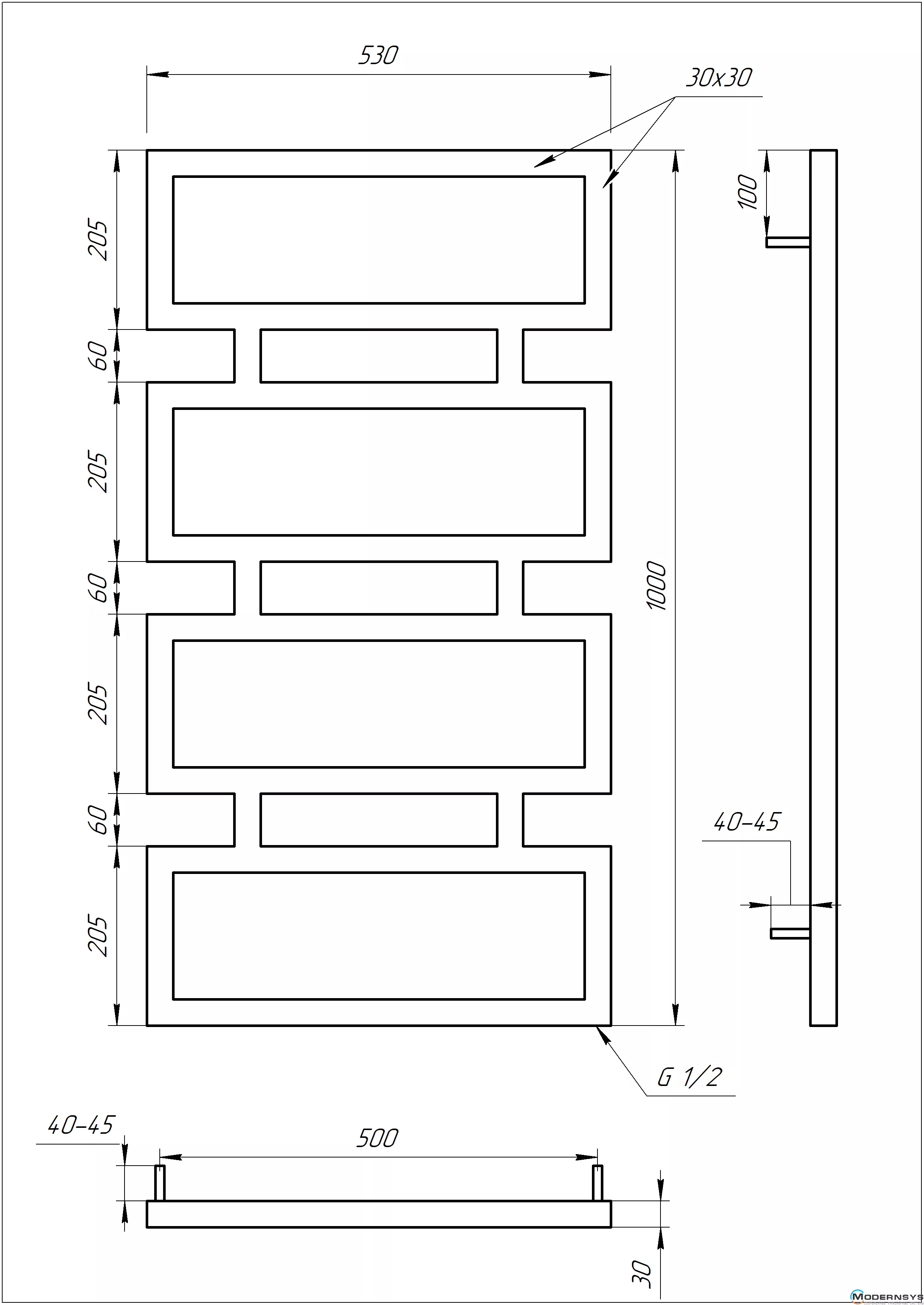 Технические характеристики: Полотенцесушитель Genesis-Aqua (Генезис Аква) QUATTRO 1000x530 белый