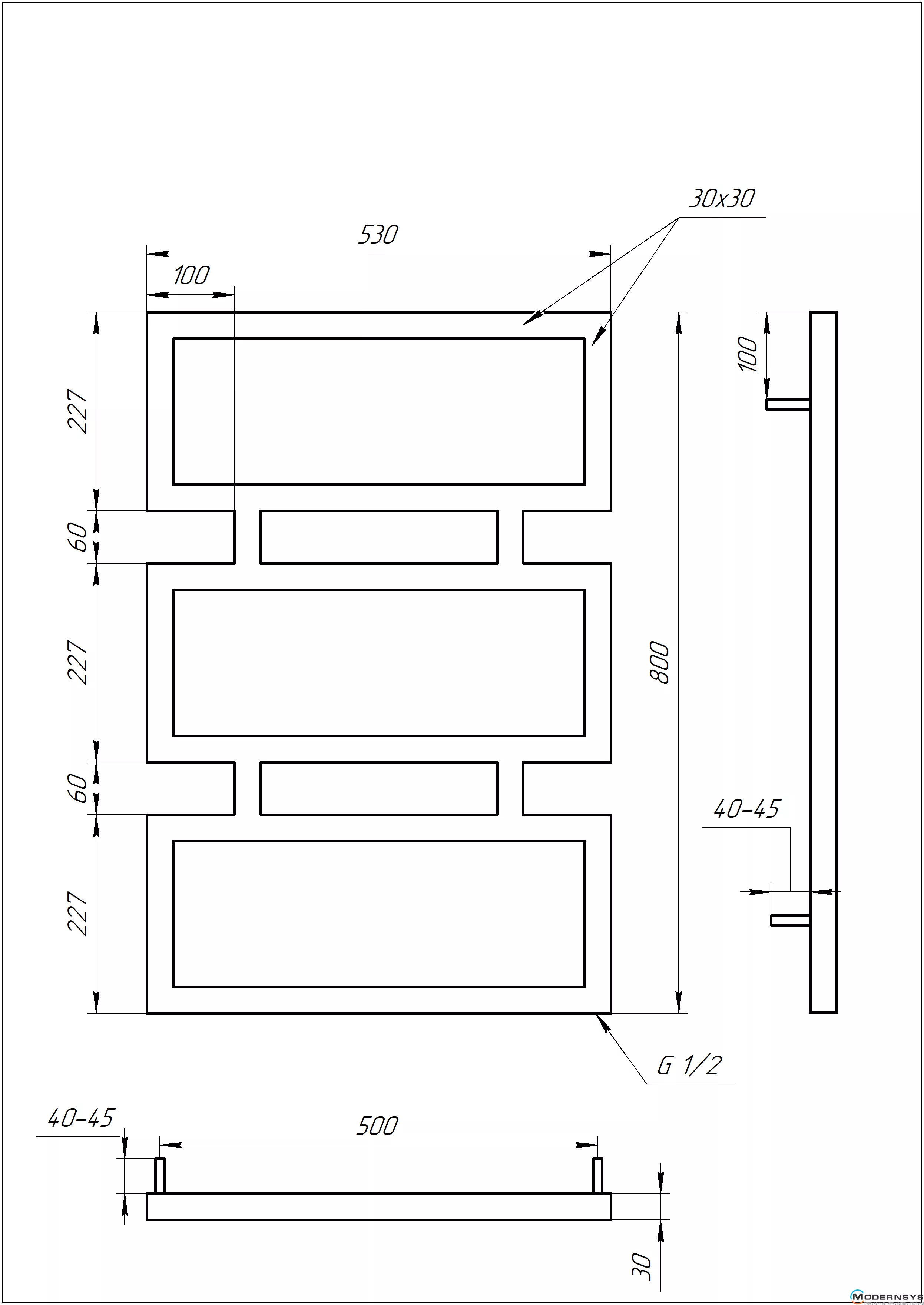 Технические характеристики: Полотенцесушитель Genesis-Aqua (Генезис Аква) QUATTRO 1200x530 графит