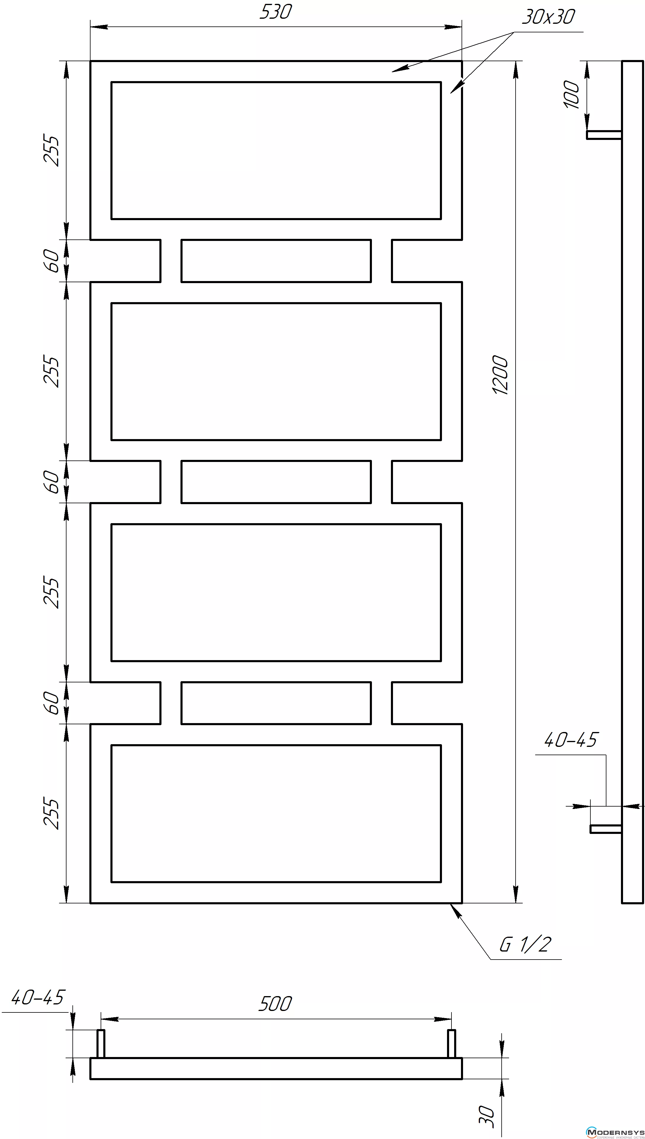 Технические характеристики: Полотенцесушитель Genesis-Aqua (Генезис Аква) QUATTRO 800x530 белый