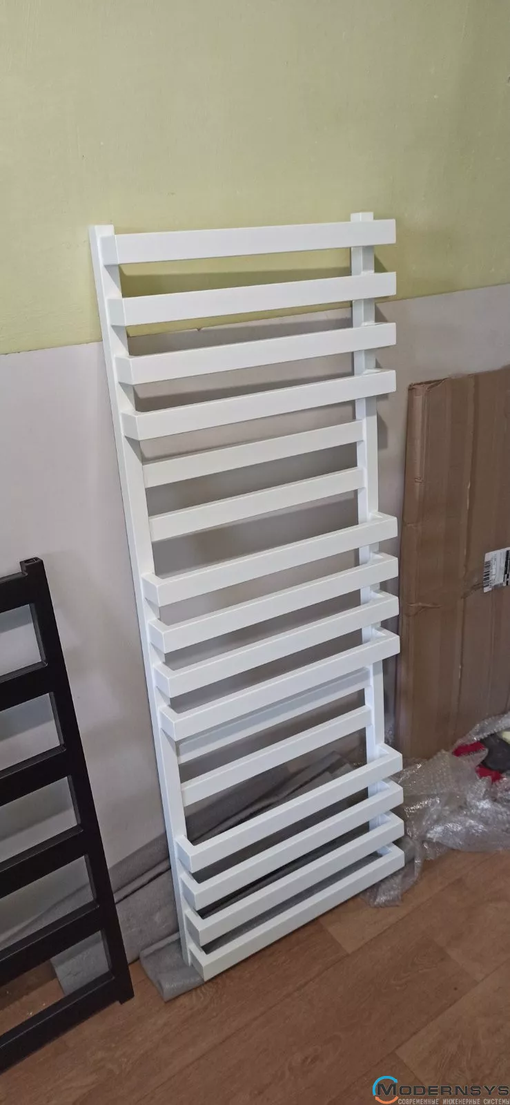- Полотенцесушитель подойдет для разнообразных интерьеров, так как изготовлен в белом, эффектном черном и сером цвете.