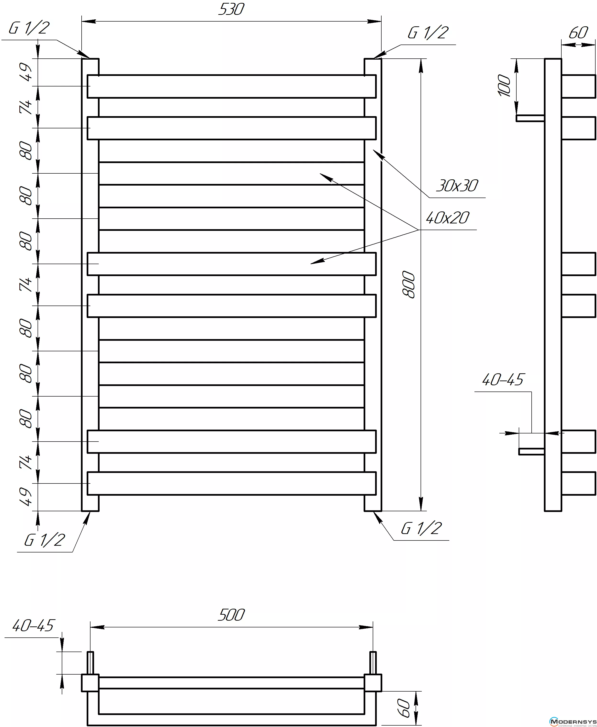 Технические характеристики: Полотенцесушитель Genesis-Aqua (Генезис Аква) SANTA 800x530 графит