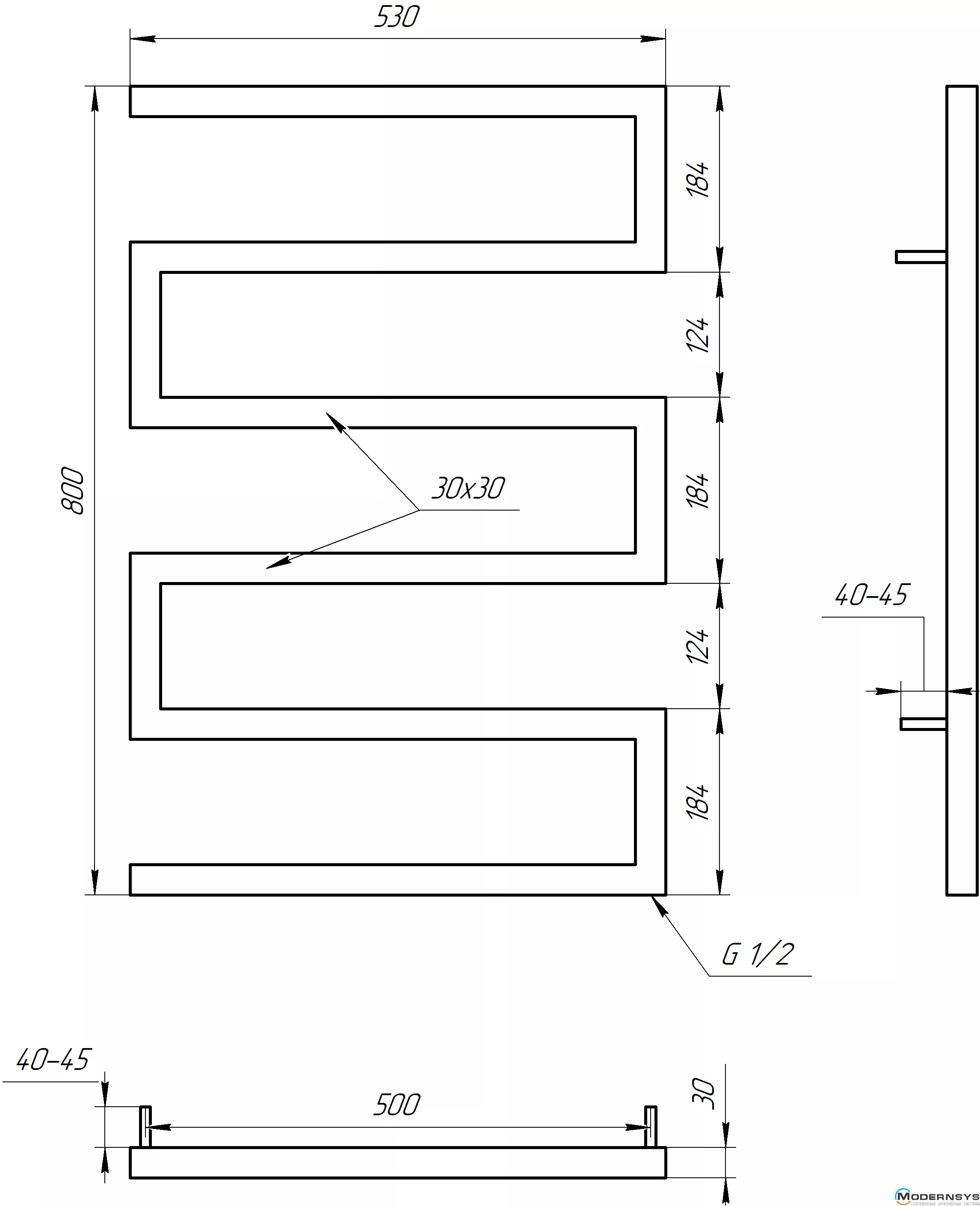 Технические характеристики: Полотенцесушитель Genesis-Aqua (Генезис Аква) SNAKE 1000x530 черный
