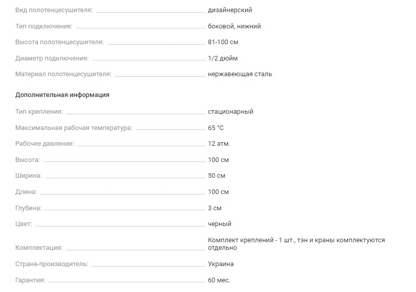 - Комплект креплений - 1 шт., тэн и краны комплектуются отдельно.