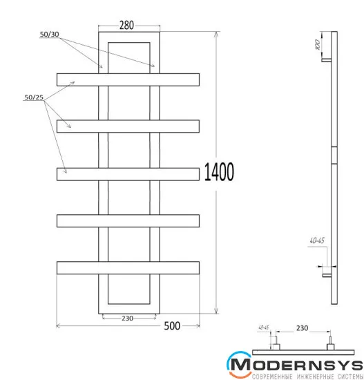 Технические характеристики: Полотенцесушитель Genesis-Aqua (Генезис Аква) Teon 1400x500 графит