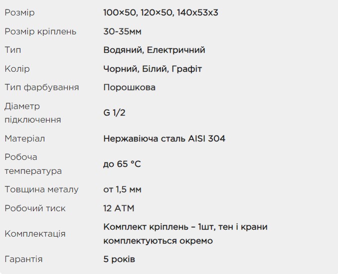 - Комплект креплений - 1 шт., тэн и краны комплектуются отдельно.