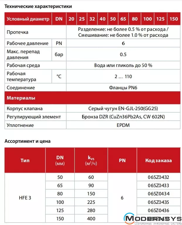 Клапана серии HFE применяются для регулирования расхода и разделения потоков теплоносителя в системах отопления и охлаждения.