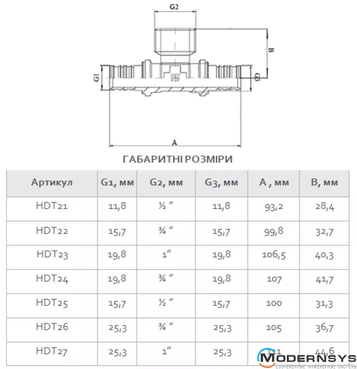 Технические характеристики: Пресс тройник с переходом на наружную резьбу FADO (Фадо) PRESS 26x3/4"x26