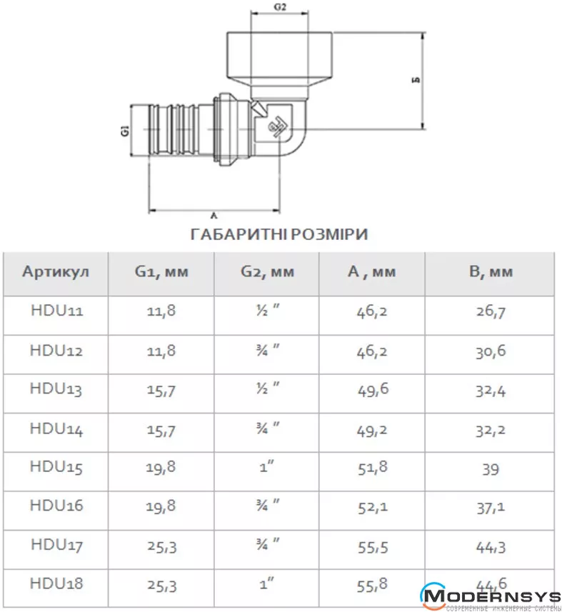 Пресс угольник с переходом на внутреннюю резьбу FADO PRESS 16х3/4" (HDU12)