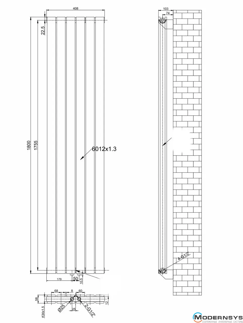 Технические характеристики: Радиатор ARTTIDESIGN (Арттидизайн) Livorno II 6/1800/408 черный матовый вертикальный дизайнерский