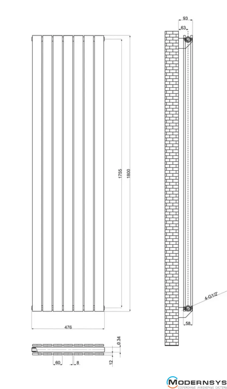 Технические характеристики: Радиатор ARTTIDESIGN (Арттидизайн) Livorno II 7/1800/476 черный матовый вертикальный дизайнерский