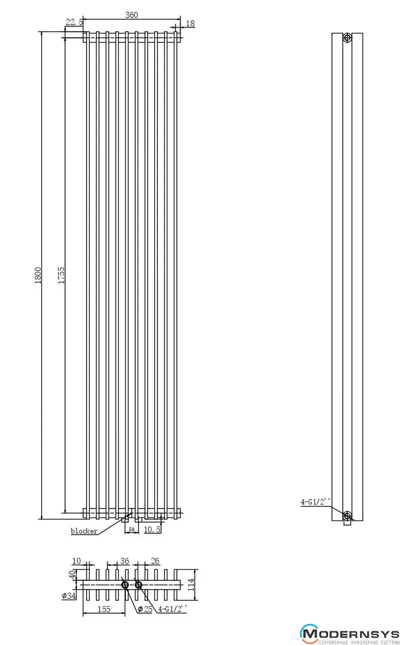 Технические характеристики: Радиатор ARTTIDESIGN (Арттидизайн) Pesaro II10/1800/360/50 серый матовый вертикальный дизайнерский