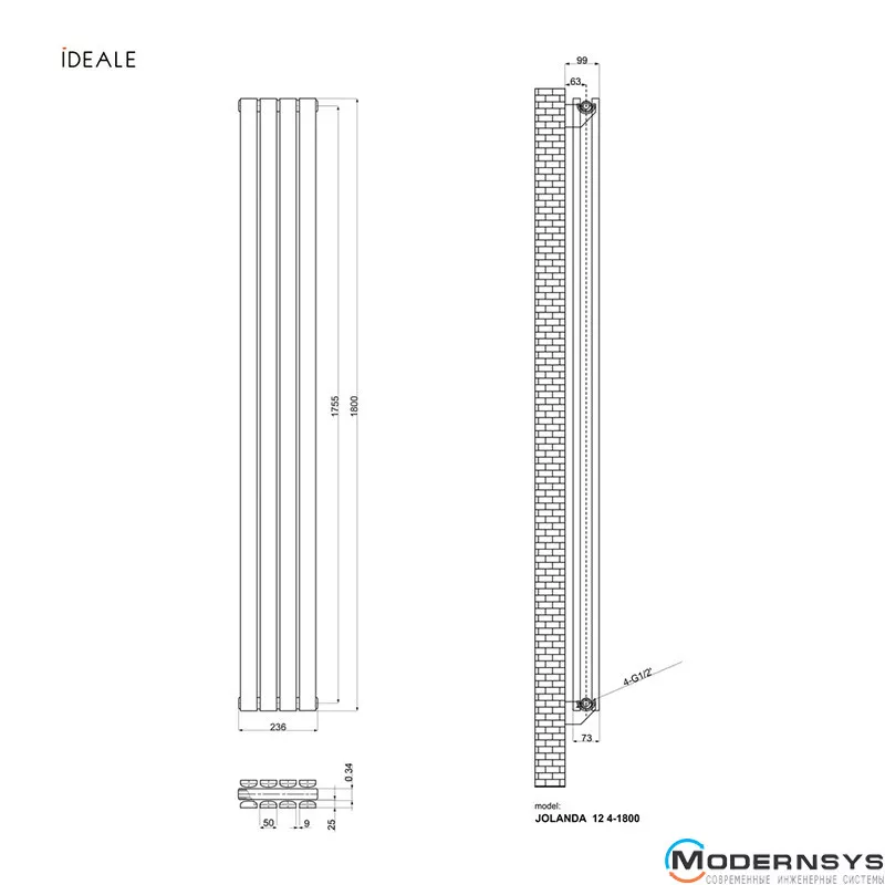 Технические характеристики: Радиатор дизайнерский Ideale Jolanda 12 4/1800/236 белый
