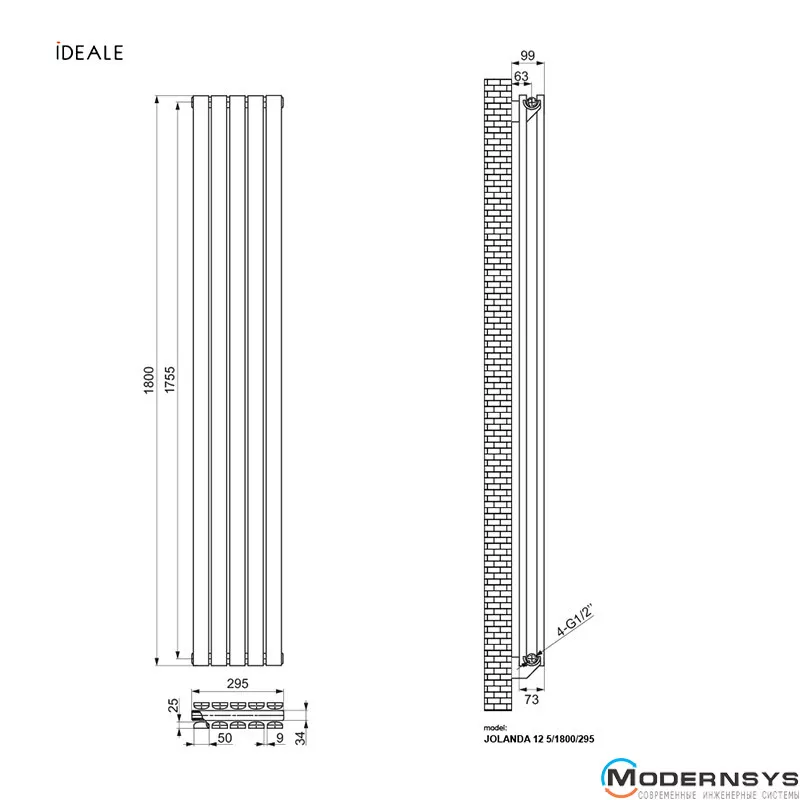 Технические характеристики: Радиатор дизайнерский Ideale Jolanda 12 5/1800/295 антрацит