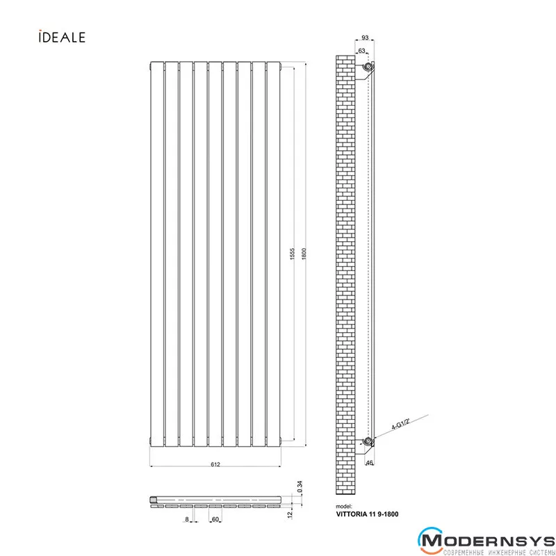 Технические характеристики: Радиатор дизайнерский Ideale Vittoria 11 9/1800/612 белый