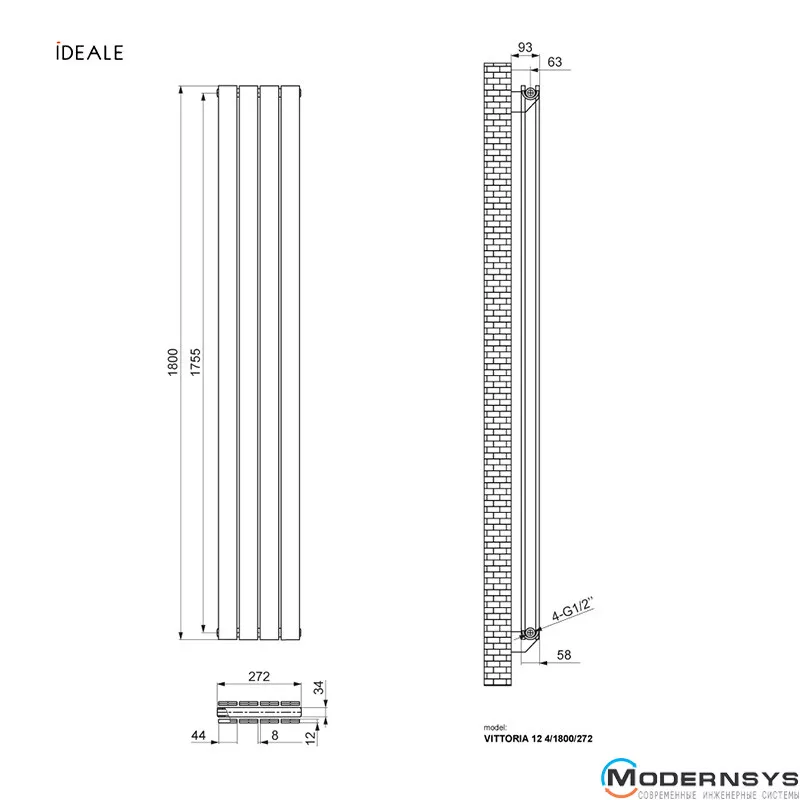 Технические характеристики: Радиатор дизайнерский Ideale Vittoria 12 4/1800/272 белый