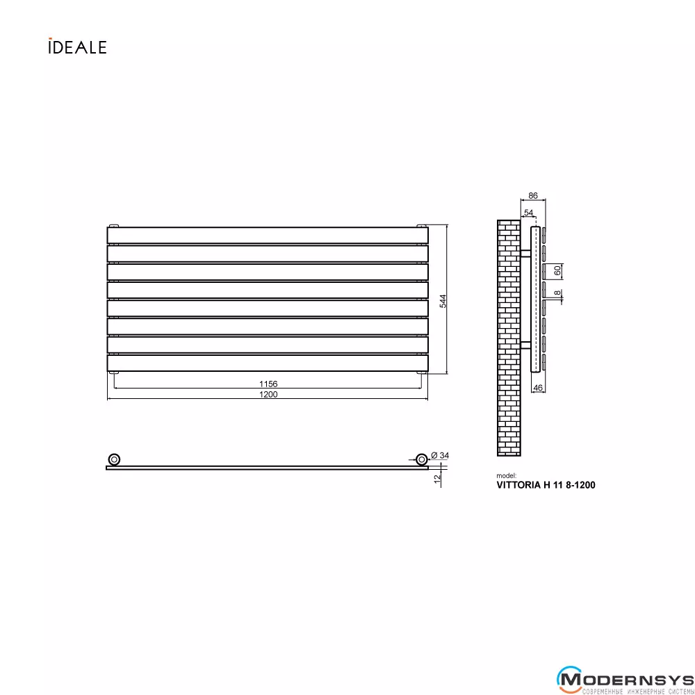 Радіатор дизайн Ideale Vittoria горизонтальный